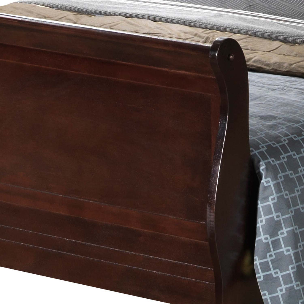 This sleigh bed brings a classic, graceful look to any bedroom with its gently curved headboard and footboard. The smooth panel detailing adds a clean, refined touch, while the sturdy frame provides reliable support night after night. Its timeless silhouette makes it easy to pair with a variety of bedding styles, creating a warm and inviting focal point for the room. Perfect for those who appreciate traditional elegance with a simple, streamlined finish.