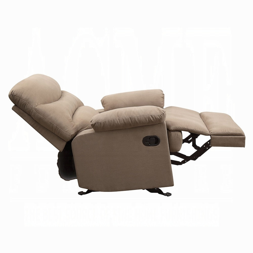 The lovely Arcadia Glider recliner offers comfort, style and value for any home. A smooth microfiber seat cushion provides relaxation from seat to toe with an easy to reach external handle for operating the reclining mechanism.