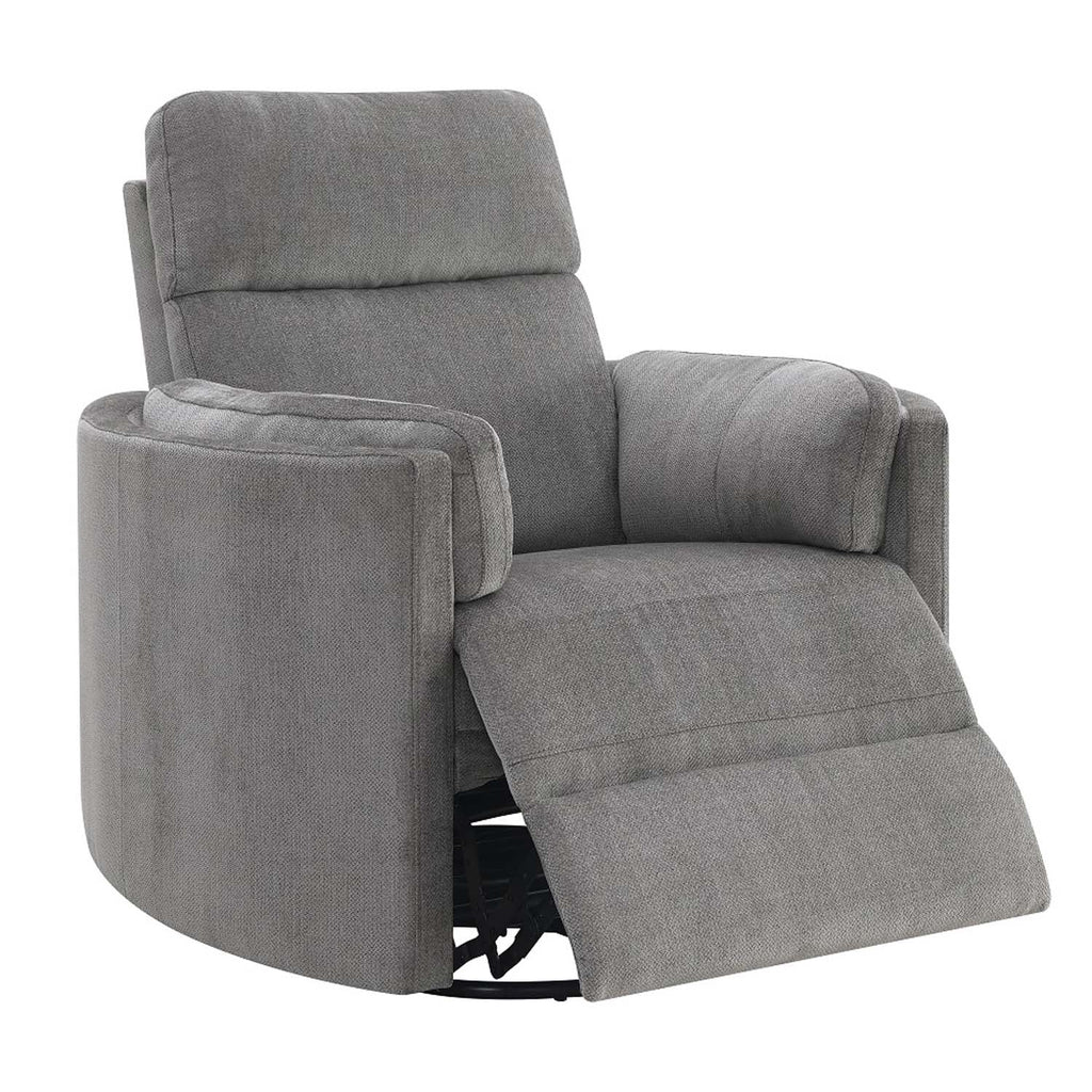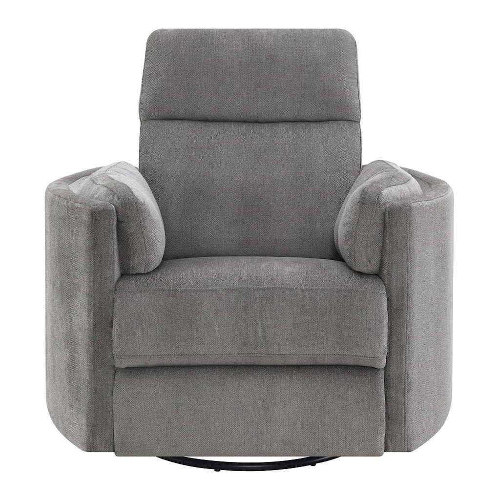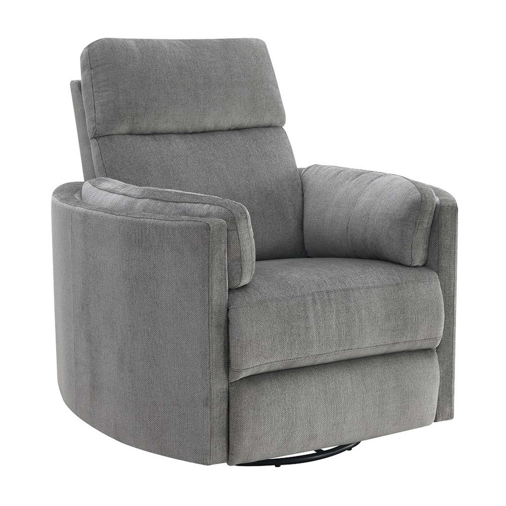 If you are looking for a trendy glider recliner chair with a swivel function, then look no further. This Sagen charcoal chenille recliner is both endearing and charming and will bring a warm and cozy feel to your living room or office space. Controlled by your body weight, you can fully recline your seating position, allowing you to lay back, relax, and unwind after a busy day. Pair this recliner with modern artwork, house plants, and a classic rug and you'll have a room so on-trend and appealing you will never want to leave.