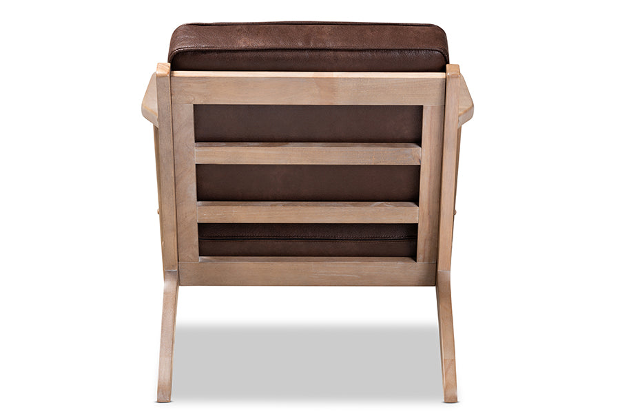 Jonesy Dark Brown Faux Leather Effect Fabric Antique Oak Armchair