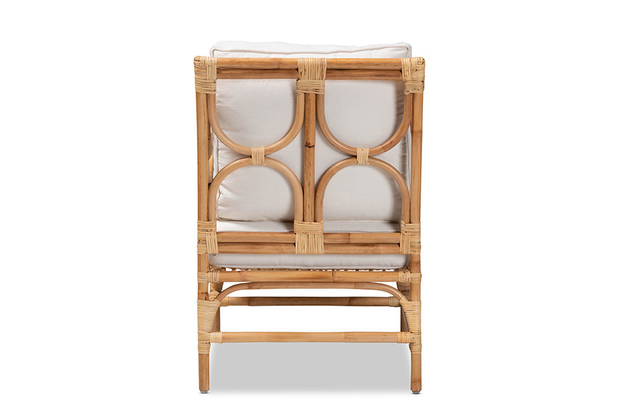 Rest and rejuvenate with the tranquil design of the Legende armchair. Made in Indonesia, this chair is comprised of a natural rattan frame adorned with woven embellishments. Its seat and backrest include cushions padded with plush foam and upholstered in smooth fabric for exceptional comfort. The Legende will arrive fully assembled and features sloping armrests for added comfort. A soothing addition that channels tropical appeal, the Legende armchair is sure to transform the mood of any space.