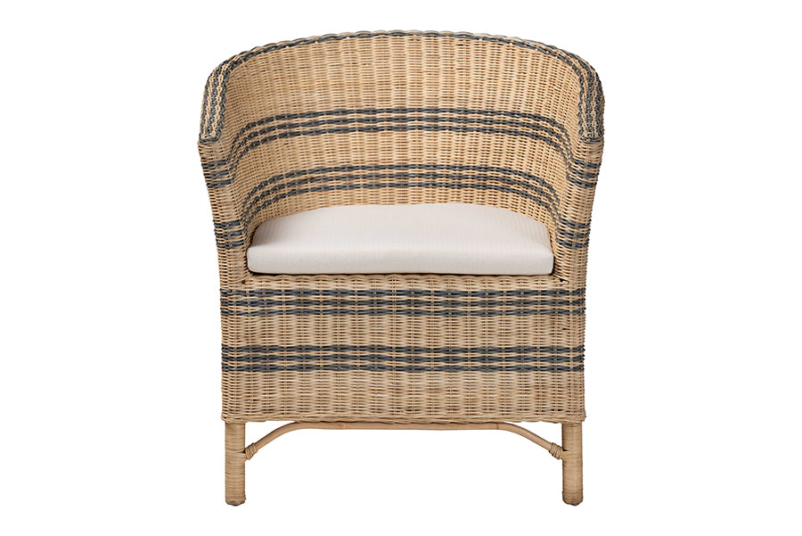 Imbue every occasion with the rustic grace of the beautiful Donny accent chair. Made in Indonesia, this bohemian piece consists of sustainably sourced natural rattan. Its rounded frame creates a pleasant presentation while flared armrests offer superb comfort. The Donny will arrive fully assembled and is fitted with a removable seat cushion padded with plush foam and upholstered in soft fabric. Striking a pose of avantgarde elegance, the Donny accent chair is sure to uplift any setting.