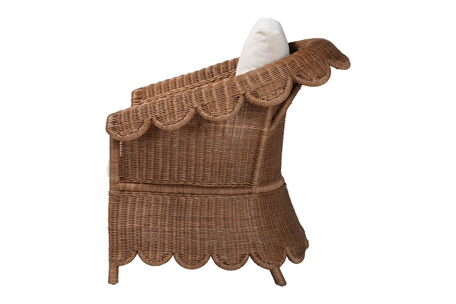 The artistic flair of paradise permeates every aspect of the stunning Contantine armchair. Made in Indonesia, this bohemian piece is handcrafted from sustainably sourced natural rattan. Its rounded frame forms elegantly sloping armrests for added comfort while beautifully scalloped borders create a vibrant presentation from every angle. The Contantine will arrive fully assembled and is fitted with removable cushions padded with plush foam and upholstered in soft fabric for superb comfort. Delivering the tranquility of an exotic hideaway, the Contantine armchair uplifts any setting.