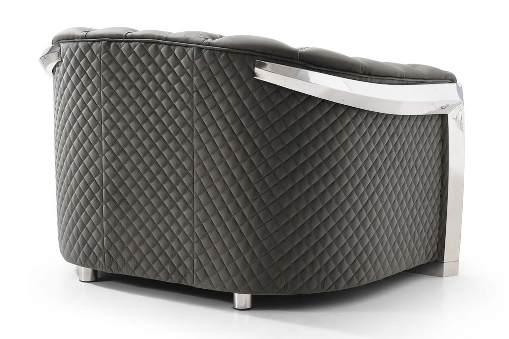 This accent chair elevates any room with its luxurious tufted design and sculpted silhouette. Deep cushioning along the back, arms, and seat creates an inviting place to unwind, while the detailed crystal-style tufting adds a touch of glamour. A modern, sleek base enhances the overall statement look, complete with an under-glow effect that adds ambient lighting and a contemporary edge. Perfect for living rooms, lounges, or upscale bedroom seating, this piece blends comfort with high-end style effortlessly.