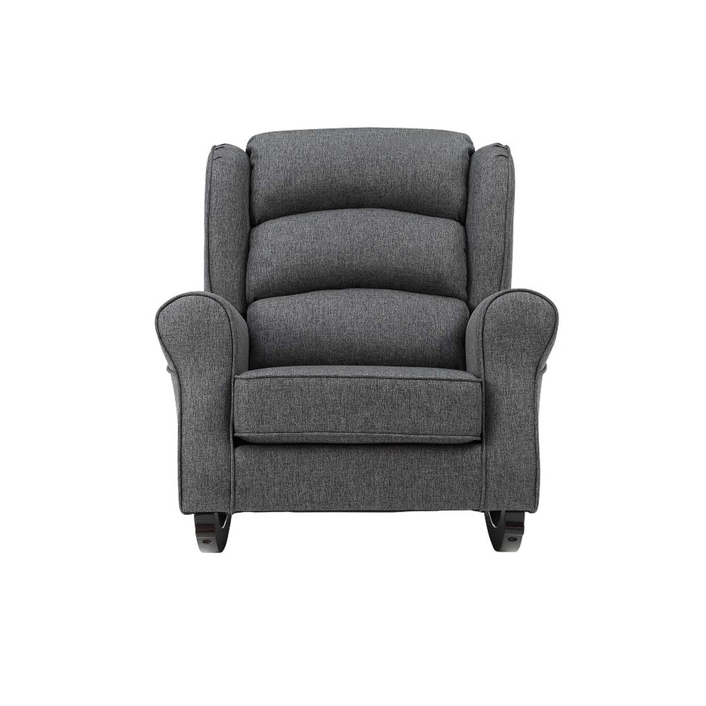 Everyone deserves to relax from time to time, and with the Fabien rocking chair, that won't be a problem. Contemporary in its design, this chair is fabricated from upholstered gray fabric with a charming subtle wingback and plush arm design. Blended with clean, modern lines and providing absolute comfort, this rocking chair is the perfect seating solution to settle in and relax with your baby. It is ideal for your living room, bedroom, or nursery, and will become the perfect addition to your home.