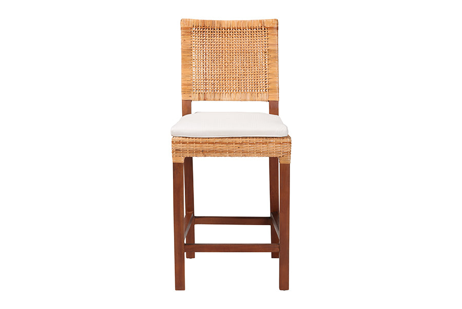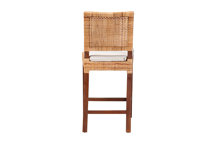 Fashion a cherished arrangement in your lounge with the delightful Merci counter stool. Made in Indonesia, this bohemian stool is comprised of a sturdy mahogany wood frame wrapped in natural rattan. The square backrest forms a crisp silhouette, while woven detailing highlights the intricate craftsmanship of the piece. The Merci will arrive fully assembled and features a convenient footrest for enhanced comfort. Perfect for indulging with friends and family, the Merci counter stool elevates any occasion.
