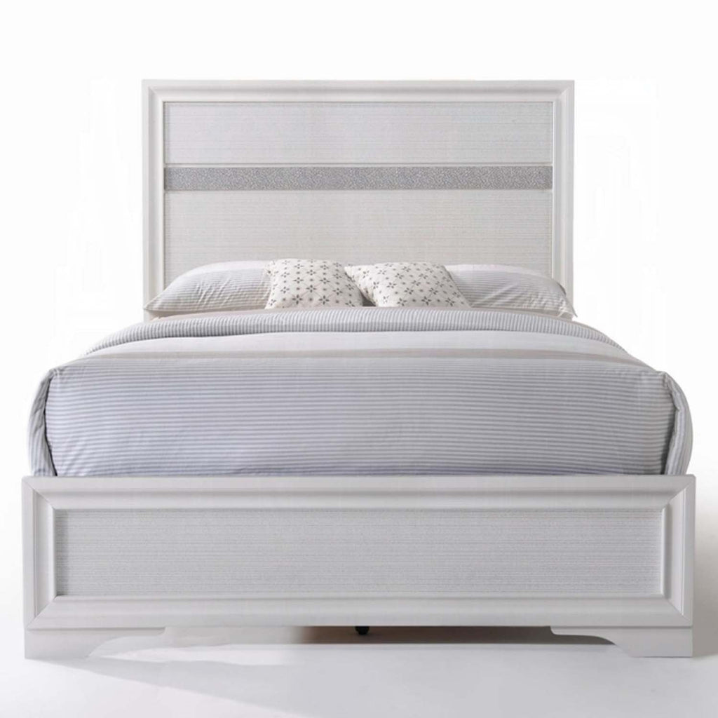 The Naima bedroom collection offers sophisticated look, clean lines and contemporary style. Features panel headboard, and low profile footboard in bright white finish with contrasting sparkling acrylic trim, which provides elegant style that will bring you a perfect sleek design for your home. Storage footboard available only for King and Queen bed size. Box spring is required.