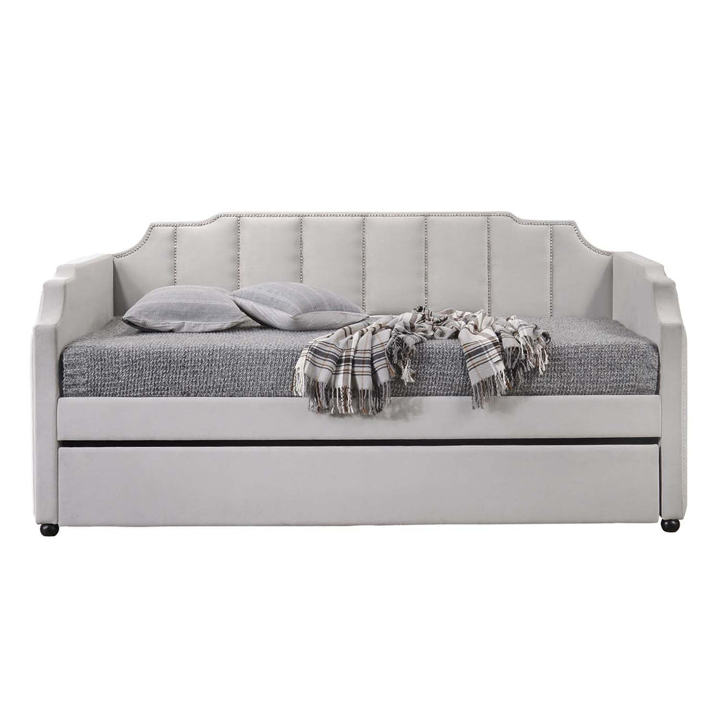 - Fully Padded Daybed & Trundle, Arched Shape, Horizontal Tufted w/ Nailhead Trim (Nailhead: Chrome Finish, 11mm)