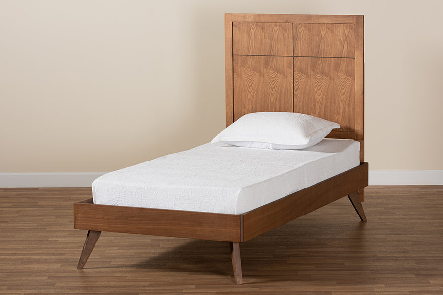 Shape your bedroom with the natural wood tones of the charming Idris bed. Made in Malaysia, the Idris is constructed from sturdy wood featuring a walnut finish that adds warmth to any space. Inset detailing on the headboard outlines the broad profile for a cool, modern look. Requiring assembly, the Idris utilizes wood slats for mattress support, which eliminate the need for a box spring. A cozy yet elegant addition, the Idris bed enhances the modern bedroom.