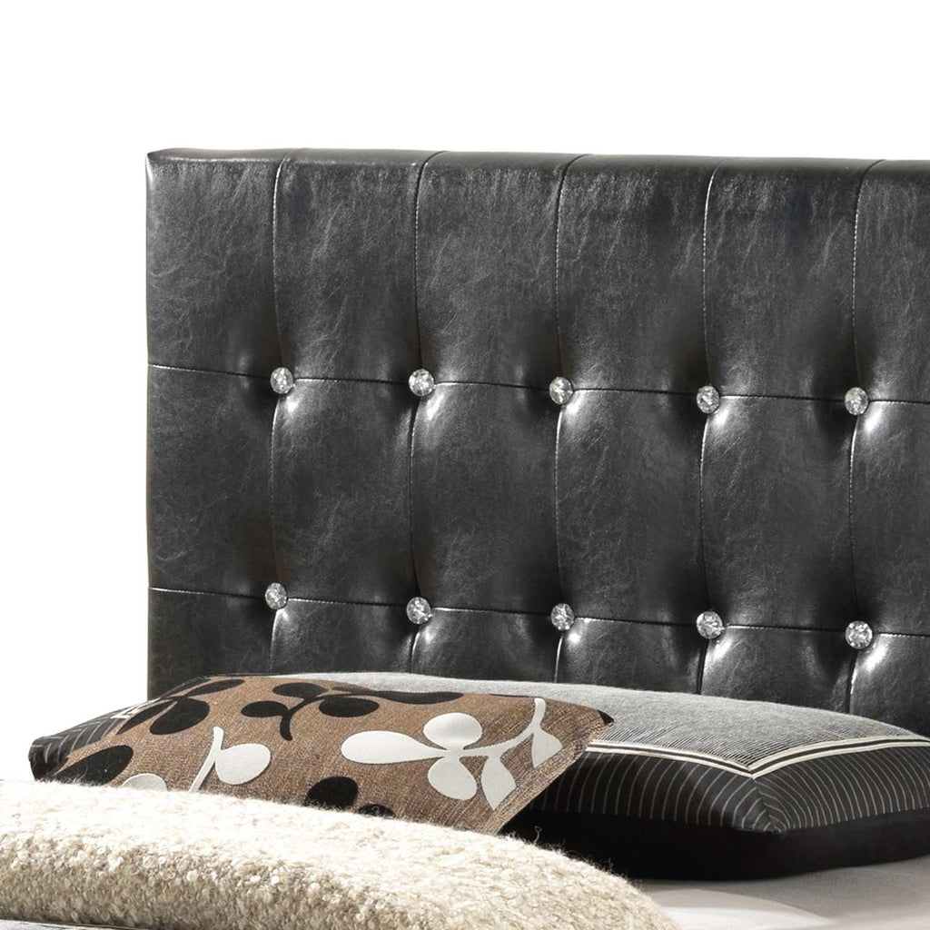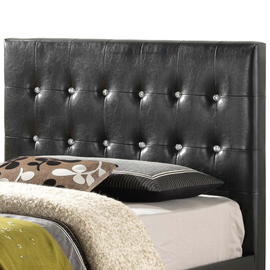 Elevate your bedroom with this striking upholstered bed featuring beautifully tufted detailing accented with sparkling crystal-like buttons. The padded headboard creates a comfortable space for reclining, while the matching footboard adds a cohesive, luxurious look. Designed with clean lines and a low-profile frame, this bed brings a refined contemporary touch to any sleeping space.