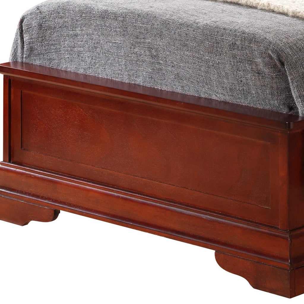 This elegant sleigh bed brings a warm, traditional charm to your bedroom with its rich wood finish and gently curved headboard and footboard. The smooth, paneled design highlights the craftsmanship, offering a clean and timeless look that works beautifully in both classic and transitional spaces. The graceful curvature adds a refined silhouette without overpowering the room, while the sturdy frame provides dependable support for nightly comfort. Its warm tones help create a cozy and inviting environment, making it an excellent choice for master bedrooms or guest rooms where style and relaxation are equally important. Pair it with neutral bedding for a soft, serene aesthetic or bold patterns to create a striking focal point. This bed delivers lasting beauty with a sophisticated, understated presence.