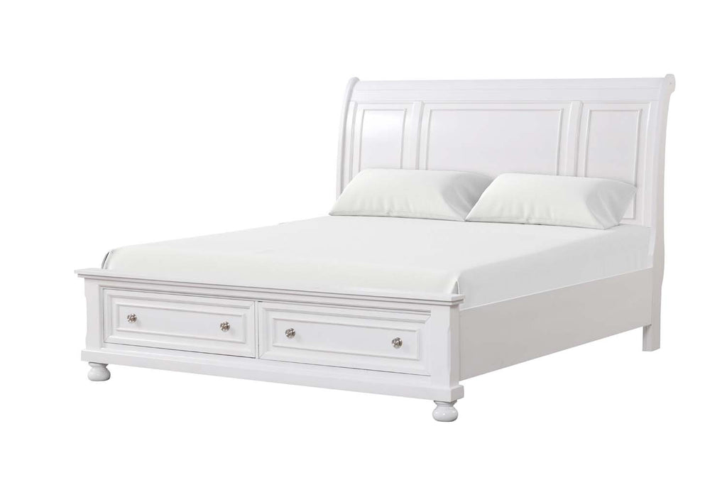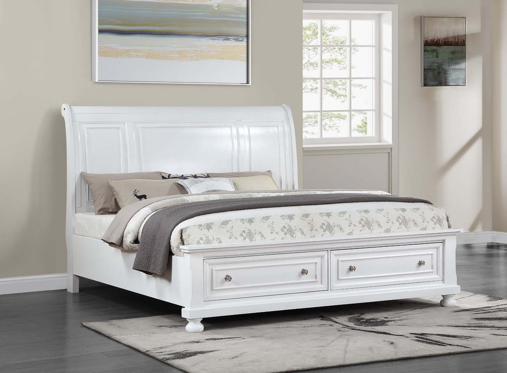 This timeless sleigh bed brings elegance and function together in a beautifully balanced design. The gently curved headboard adds a refined silhouette, giving the bed a classic presence that suits both traditional and transitional spaces. Two spacious drawers at the footboard offer practical storage for linens, blankets, or everyday items, helping you maintain a tidy and organized bedroom. Built with a sturdy platform-style frame, the bed provides reliable mattress support and long-lasting stability.