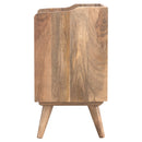 This gallery back nightstand is the perfect stand for any bits and pieces you wish to keep nearby before bedtime. It features ample space for a lamp, photo frame or any ornaments. It has been constructed from 100% solid mango wood with a fine oak-ish finish body. Some other product characteristics are 4 Nordic wood style legs and cut out slots for easy access to and from the drawers. Its simple and clean design is the ideal piece of furniture for both country homes as well as modern apartments.