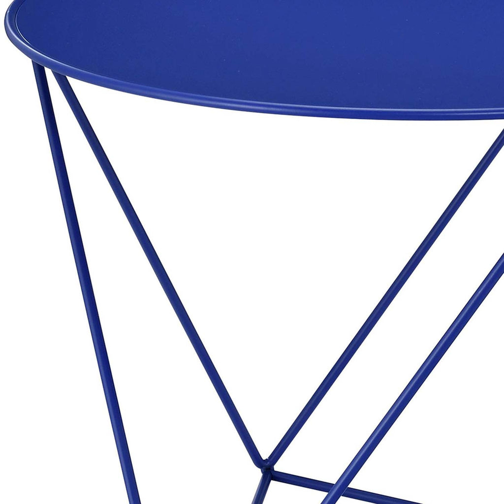 Bring dimension, depth and distinctive visual appeal with this modern geometric design. The accent table boasts a cool and fun look. Round table top paired with irregular metal base adds a uniquely attractive contrast to this table. It's powder coating provides a beautiful, durable finish and supports four different colors including: blue, yellow, white, gray. Use the Epidia Accent Table to achieve a youthful and bright decor scheme