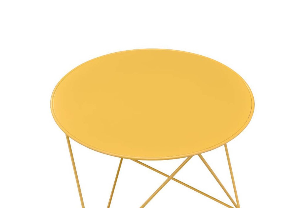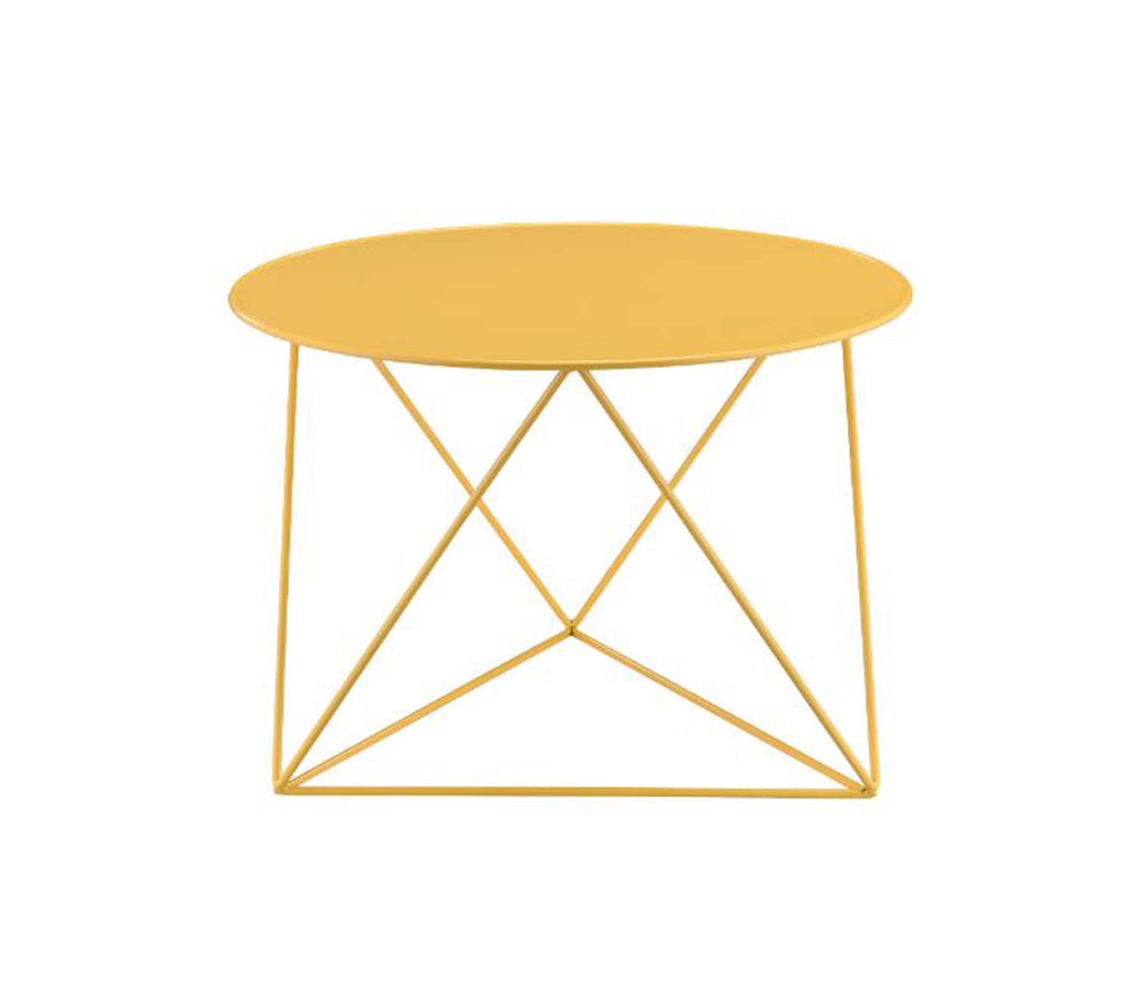 Bring dimension, depth and distinctive visual appeal with this modern geometric design. The accent table boasts a cool and fun look. Round table top paired with irregular metal base adds a uniquely attractive contrast to this table. It's powder coating provides a beautiful, durable finish and supports four different colors including: blue, yellow, white, gray. Use the Epidia Accent Table to achieve a youthful and bright decor scheme