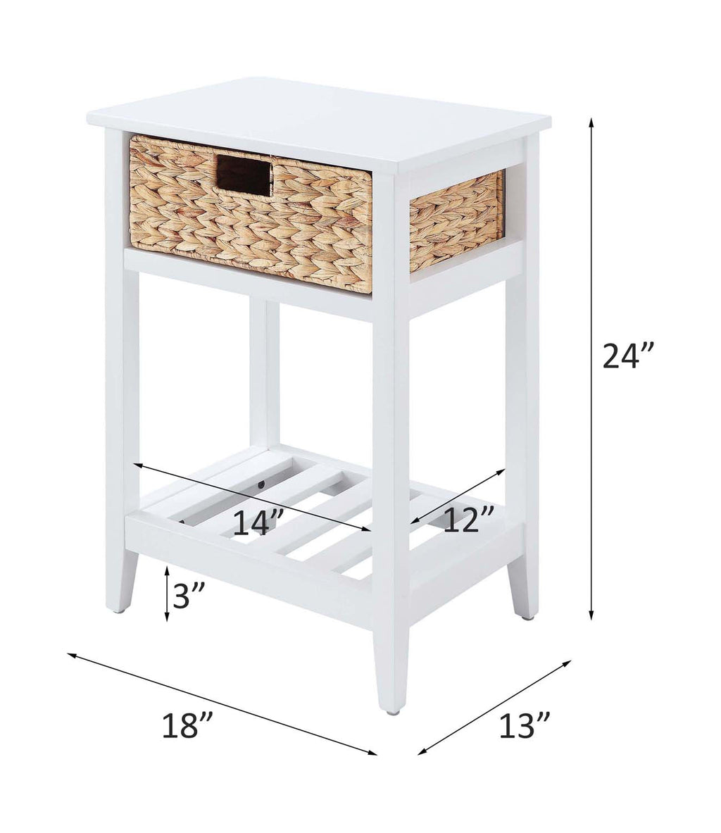 Refreshing, relaxing and calm, the Chinu Accent Table will coordinate your seating arrangement in coastal breezy style. It's wooden frame with a slatted shelf design embodies a relaxed simplicity. A woven basket gives it a natural surface texture that feel comfort and simple. Pair this perfect addition with your cozy sofa for an airy and natural living space.