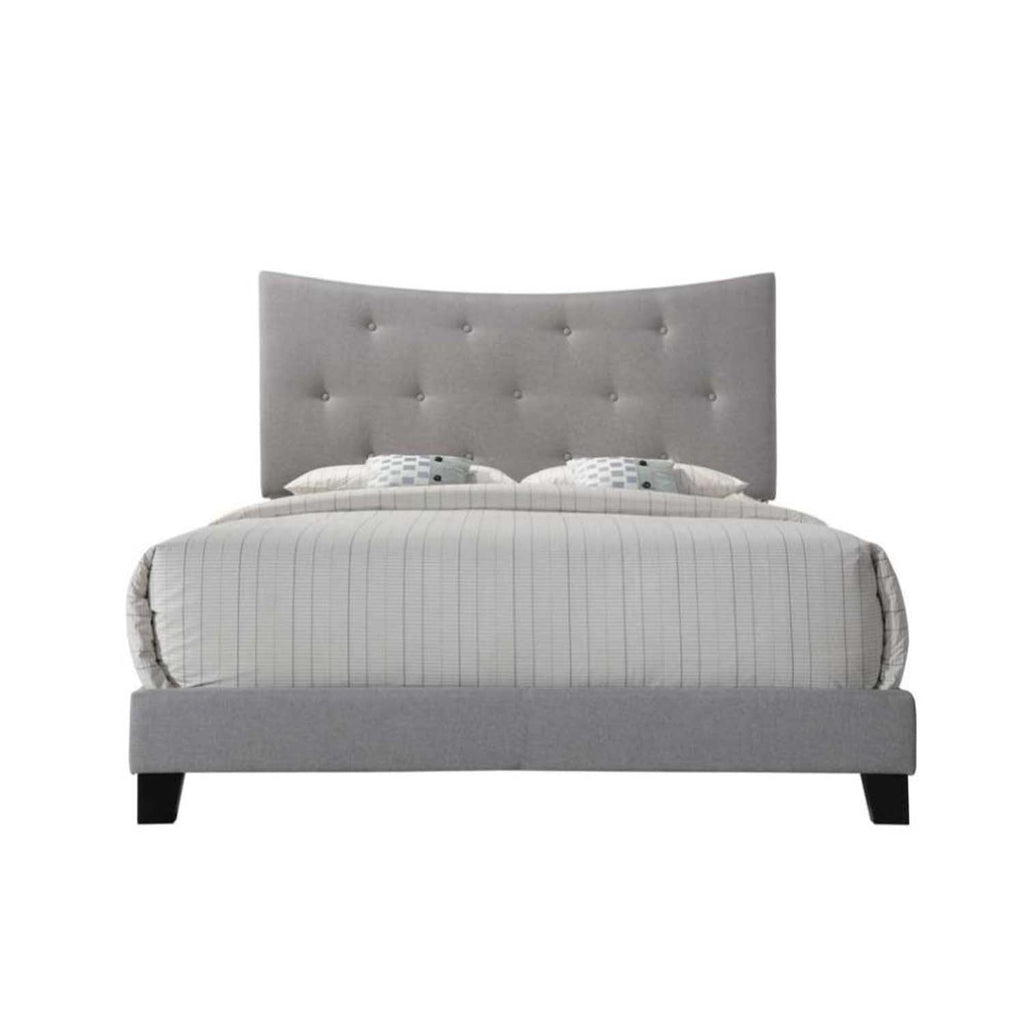 The Venecha platform bed is stunning with its soft concave arch in the headboard that also features button tufting. The side rails and platform footboard are also wrapped in the gray and supported by wood feet and headboard posts. This bed would work well with any Decor as a new addition to a bedroom.