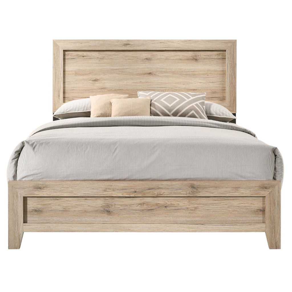 The Miquell bedroom collection provides a commanding presence in any bedroom. This contemporary panel bed features a rectangular headboard with low profile footboard with tapered legs, crafted with a transitional look that is an ideal addition to any bedroom. This fashionable bed will fuse with the surrounding Decor and accent your other bedroom furniture, transforming a room from ordinary into something interesting and sophisticated.
