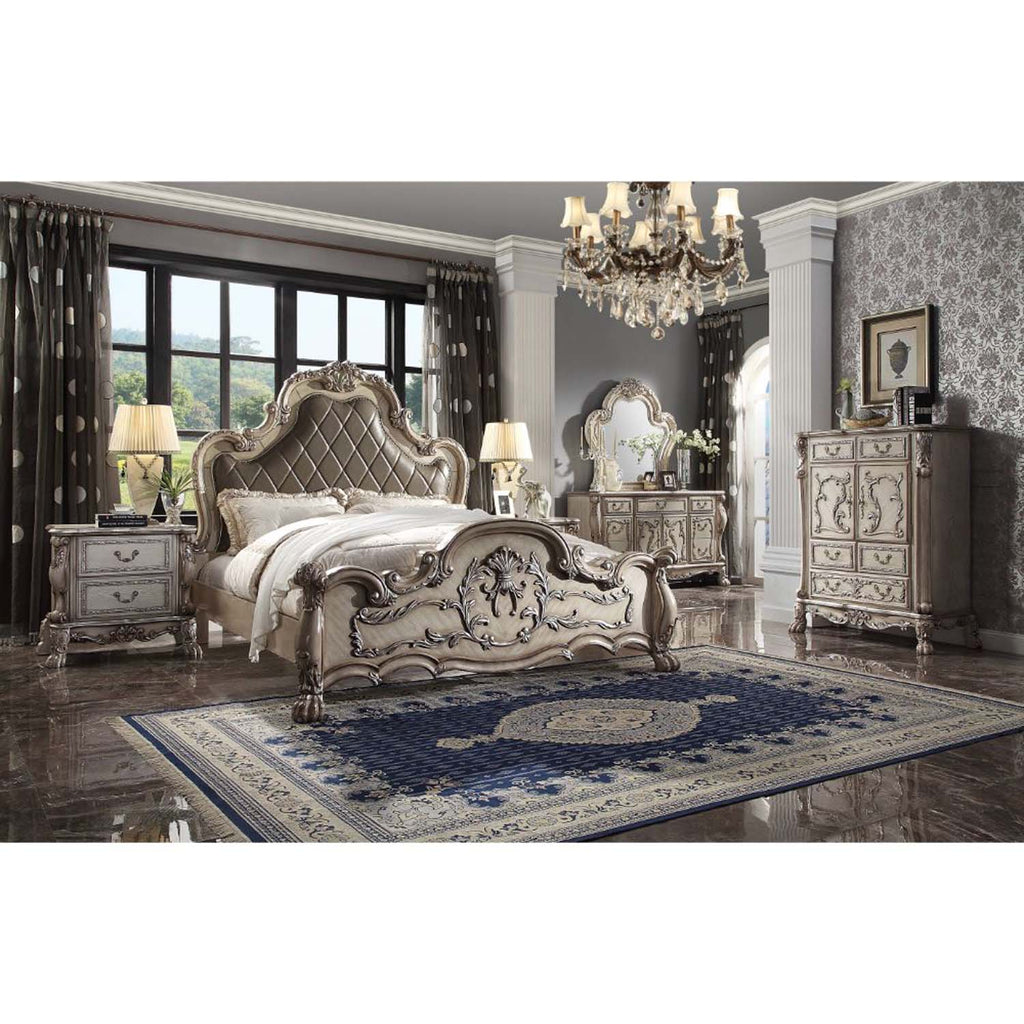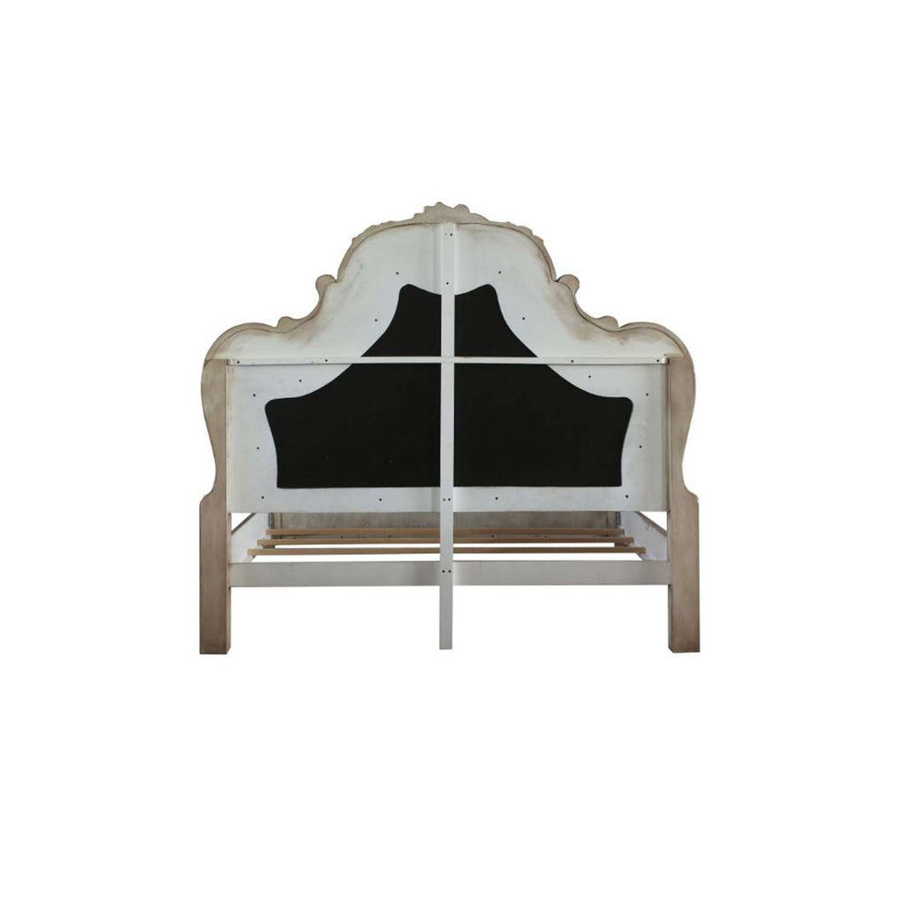 Dresden Queen Bed, Faux Leather & Vintage Bone White Finish