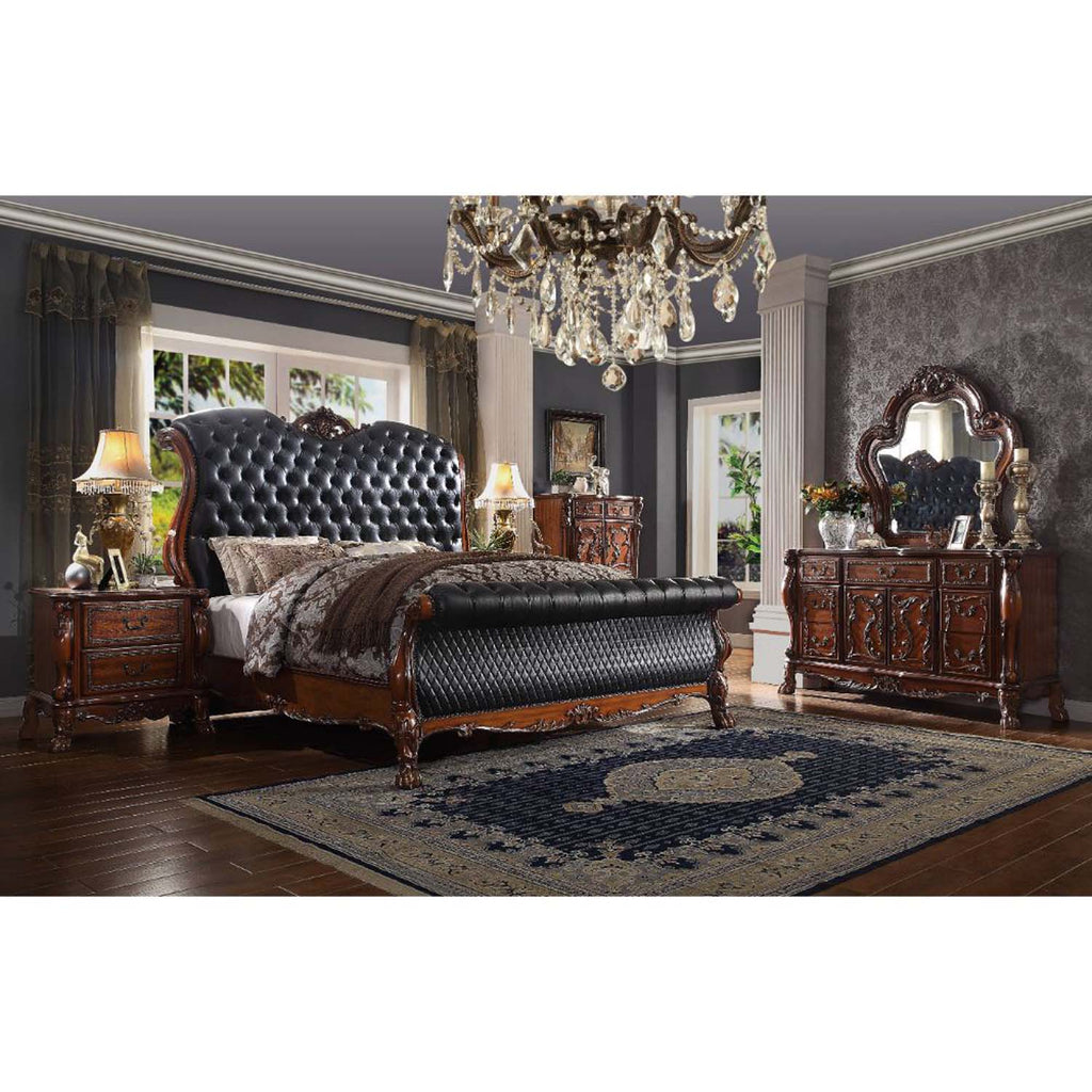 Dresden Queen Bed, Faux Leather & Cherry Oak Finish