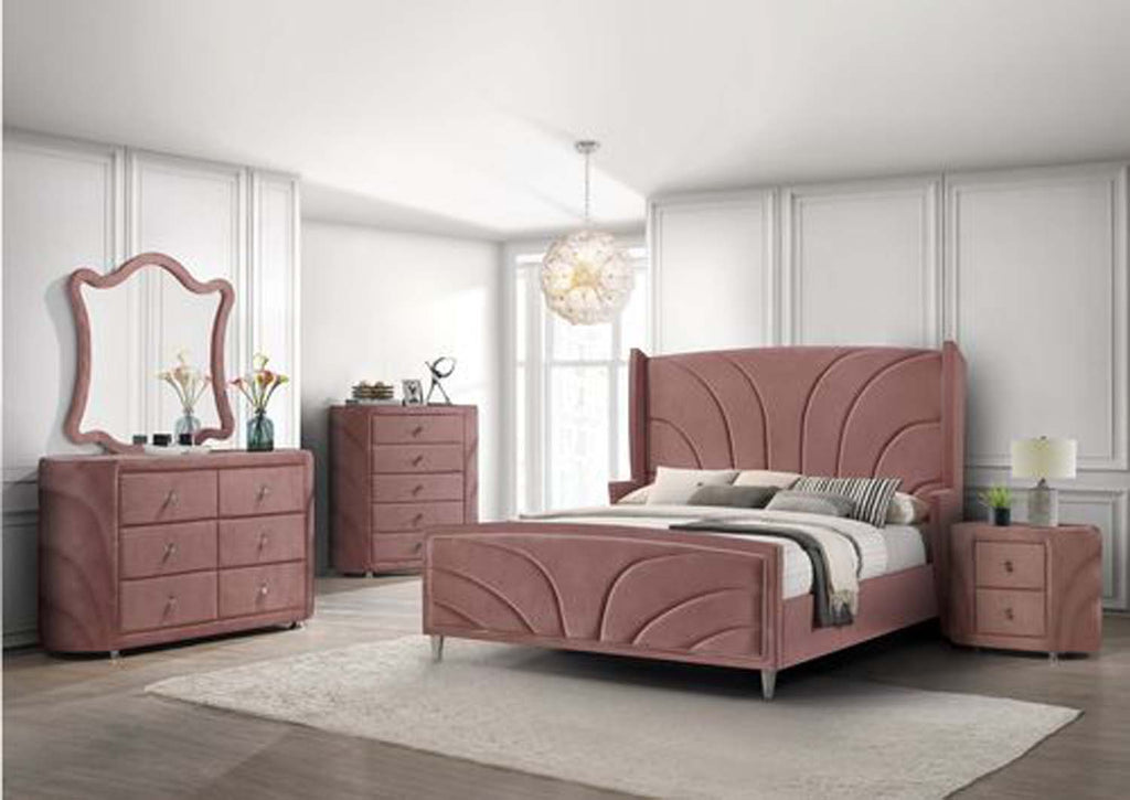 Salonia King Bed, Pink Velvet