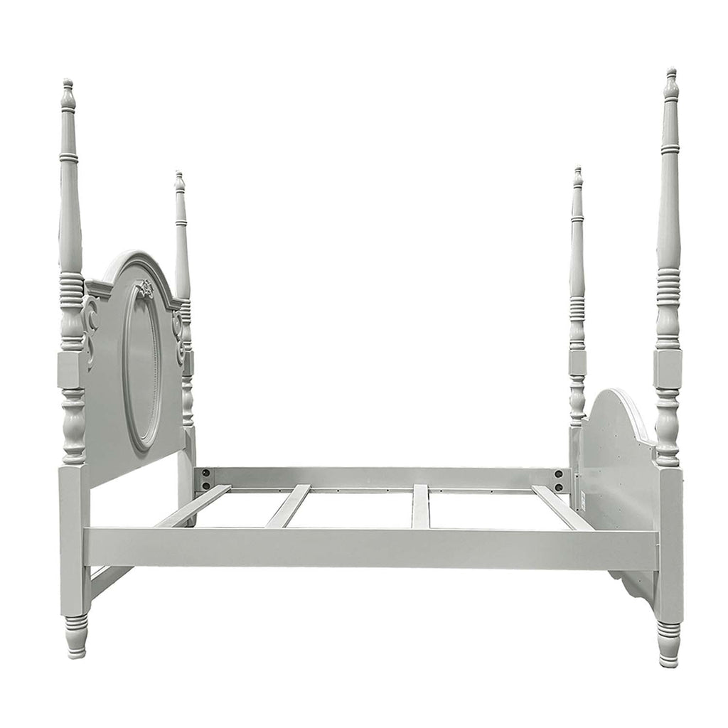 Fulfill your little girl's dream of being a princess by creating a royal retreat with the Flora poster bed. This frilly bed features a scalloped footboard. Beautiful floral motifs and scrolls adorn the headboard and footboard. The posters make a grand regal gesture making this bed the focal point in any bedroom. The gray finish is perfect for a modern princess. This bed is sure to make your little one beam with happiness.