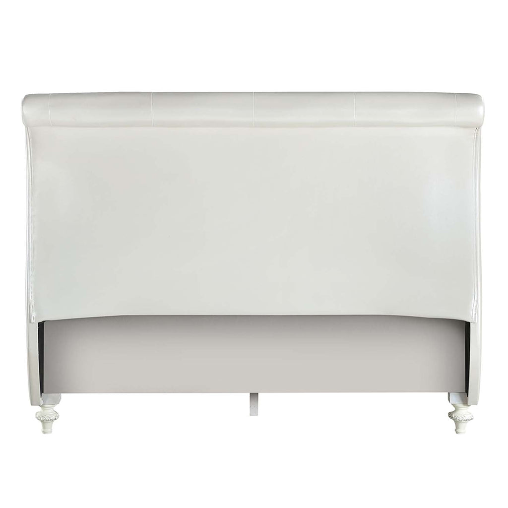 Bring home this dreamy and elegant Dorothy bed. This fully padded bed features pearl white synthetic leather upholstery along with crystal-like button tufting throughout. It sits on ivory wooden bun feet that feature beautiful floral designs. These fine details make for a glamorous design fit for a mini diva.