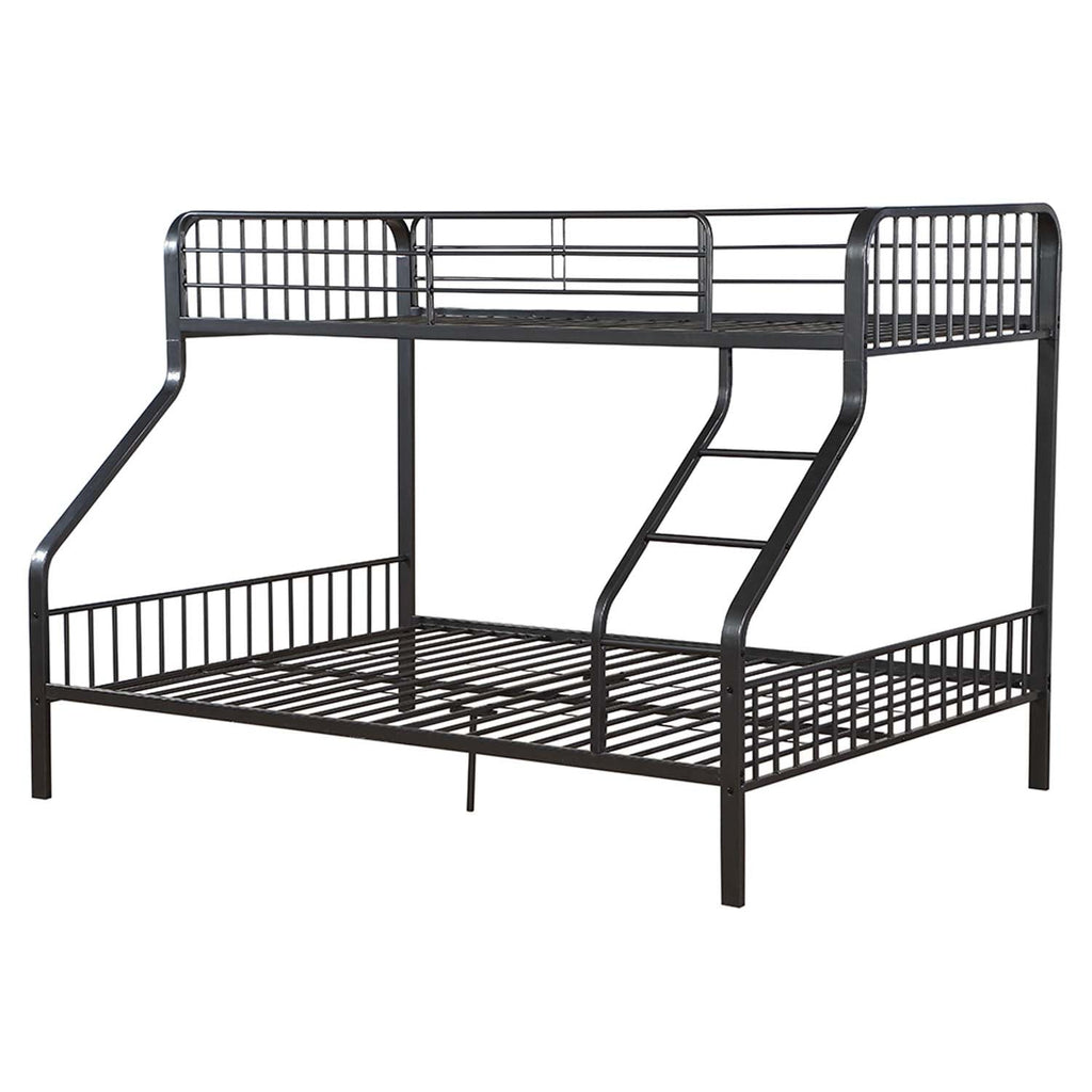 This space-saving Caius twin over queen metal bunk bed meets all your needs and expectations. Features easy access guardrails, right facing built-in ladder and a metal tube support slat system. Accommodating a XL Twin and Queen mattress, this sturdy bunk bed will last through years of play.