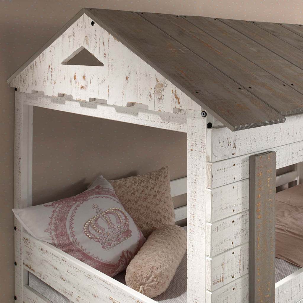 Make bedtime fun again with the Darlene Bunk Bed. This sturdy piece is expertly crafted with selected solid pine wood. Guardrails are included for added safety, as well as a ladder for easy access to and from the top bed. Perfectly complemented by a Multi-Function base that can be used for sleeping or as a play area. Available in your choice of finish: rustic white or rustic gray.