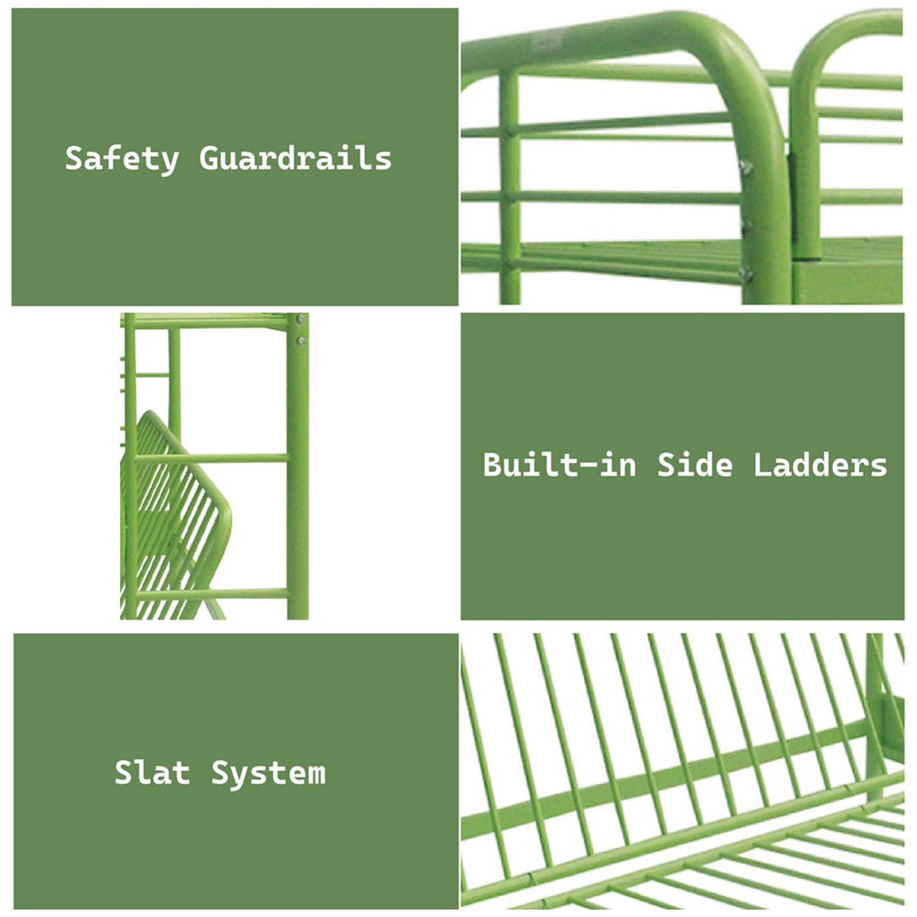Bring home this Eclipse twin over full-futon bunk bed to let your kids enjoy personal space without compromising on style. The convertible futon feature allows to switch from a sit to sleep position by simply lifting the light weight of the seat; a quick and easy transformation into a ready to use bed. Superior quality metal for durability, built-in side ladders for easy access, and full length guard rails for safety. Choose from a variety of colors, makes it compatible with all types of decor settings. Mattress Not Included