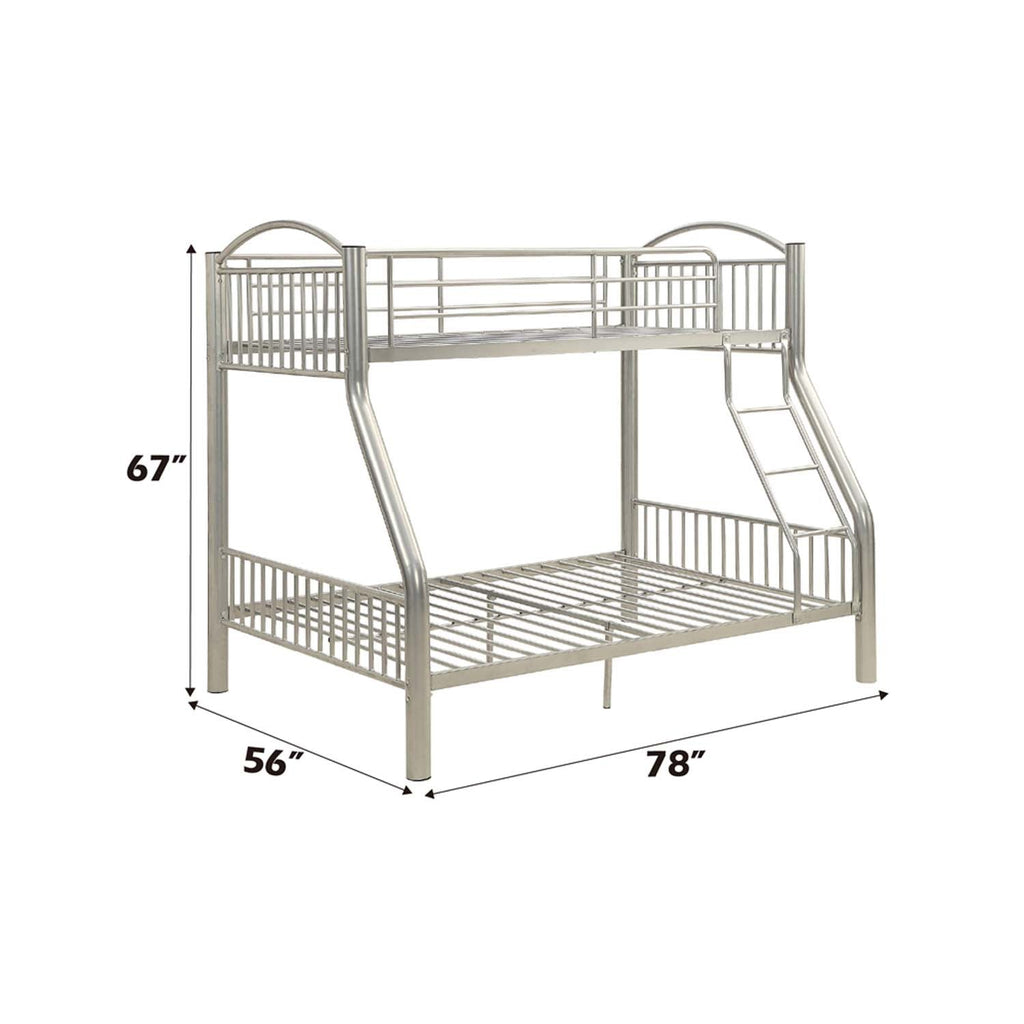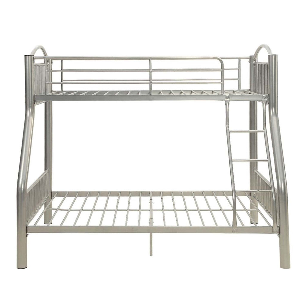The Cayelynn bunk bed is a great way to free up space in a kids bedroom. It is a round metal tube design and features a built in ladder to the upper twin bed that also has a guardrail. This bed is available in black and silver.