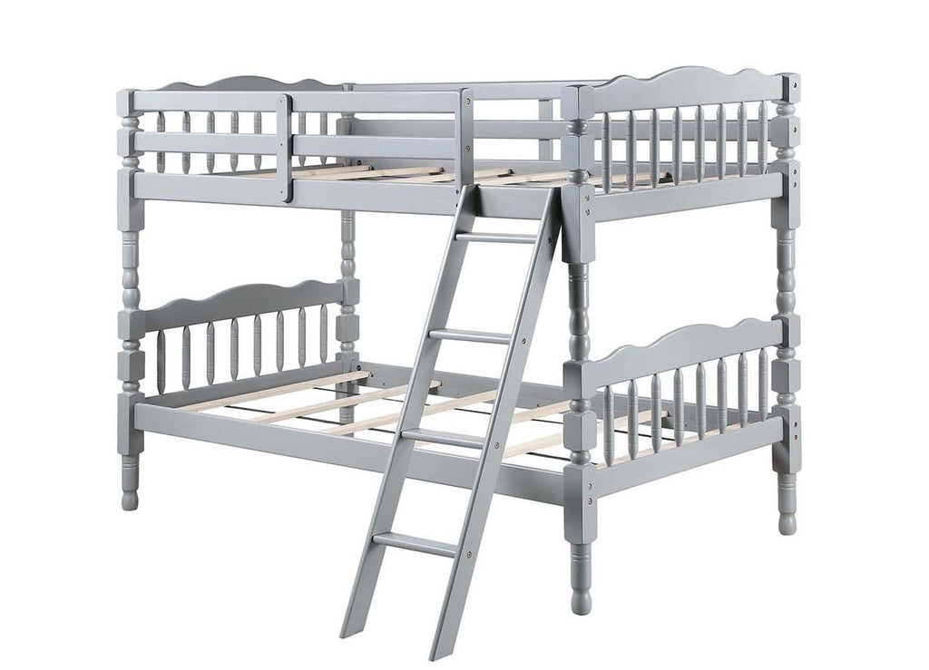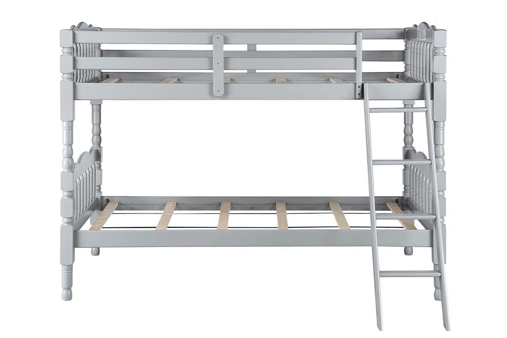 Perfect for maximizing space in shared bedrooms or guest areas, this twin over twin bunk bed offers a smart, space-saving solution without compromising comfort. Featuring two twin-sized sleeping surfaces stacked vertically, it provides ample room for two sleepers while preserving valuable floor space. A built-in ladder ensures easy access to the top bunk, while safety guardrails offer added peace of mind. The clean, versatile design blends effortlessly with various décor styles, making it a great fit for kids' rooms, vacation homes, or small living areas. Durable, functional, and thoughtfully designed for everyday use.