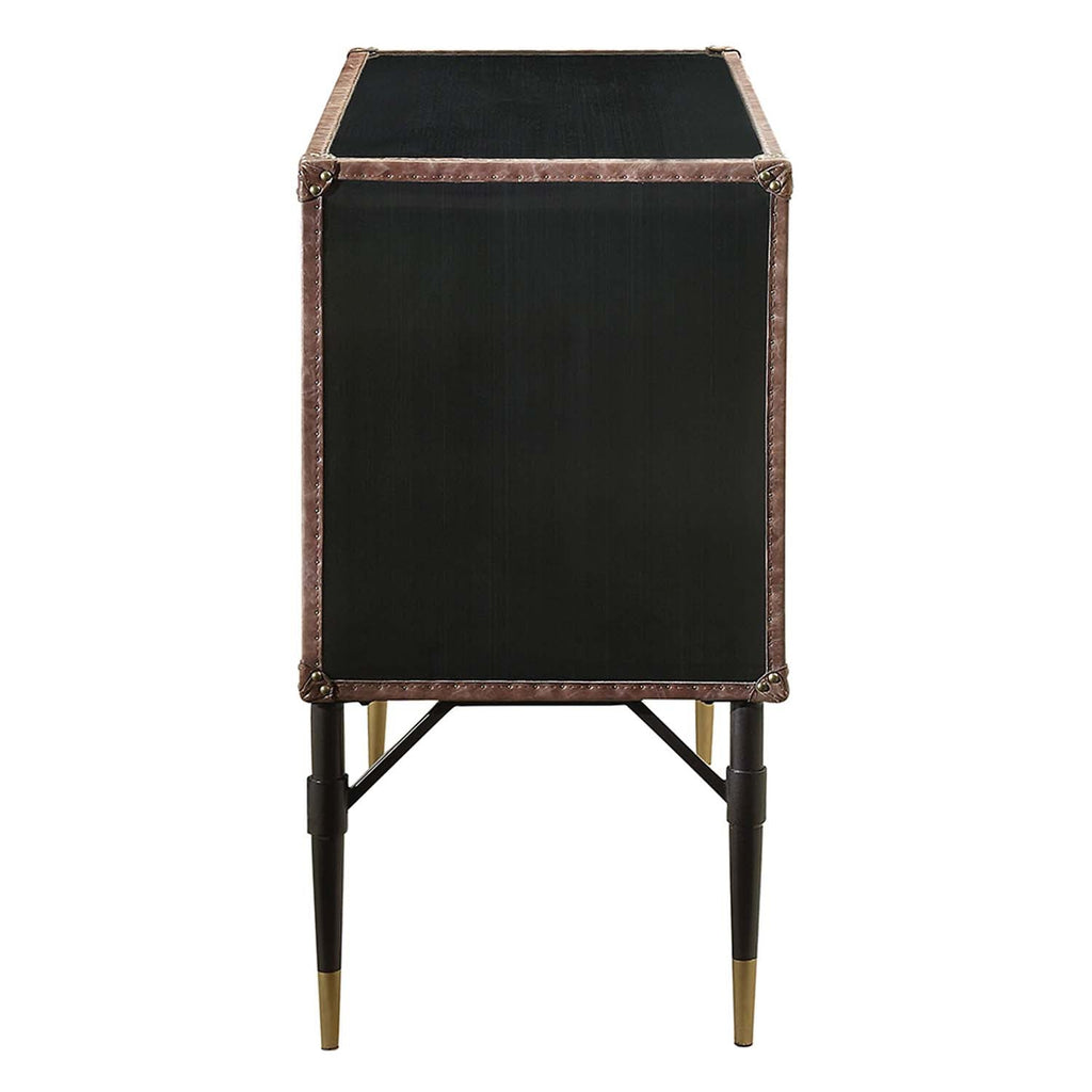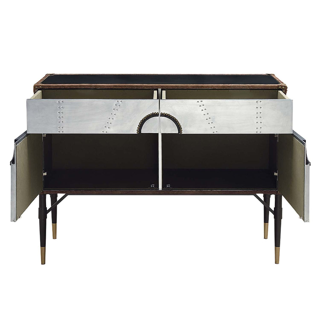 With its riveted patchwork of polished aluminum, the Brancaster Console Cabinet,Living Room is inspired by mid-20th-century air travel. This unique console piece features ample storage with two drawers and Cabinet,Living Room space with two doors, all supported by tapered metal legs. A masterful example of form and function, the Brancaster Console Cabinet,Living Room will pair beautifully with your leather upholstered furniture.