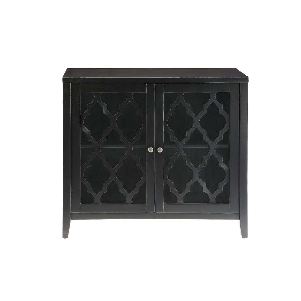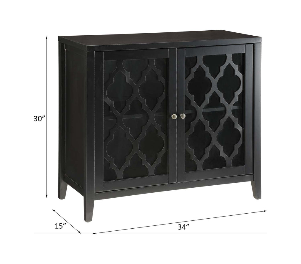 Bring a additional storage place in your house. A must own classic design with its fret work over glass doors and shelf inside, the Ceara Cabinet,Living Room is a wonderful addition to any environment. It features an open design fret work, allowing any thing stored to be viewed inside.