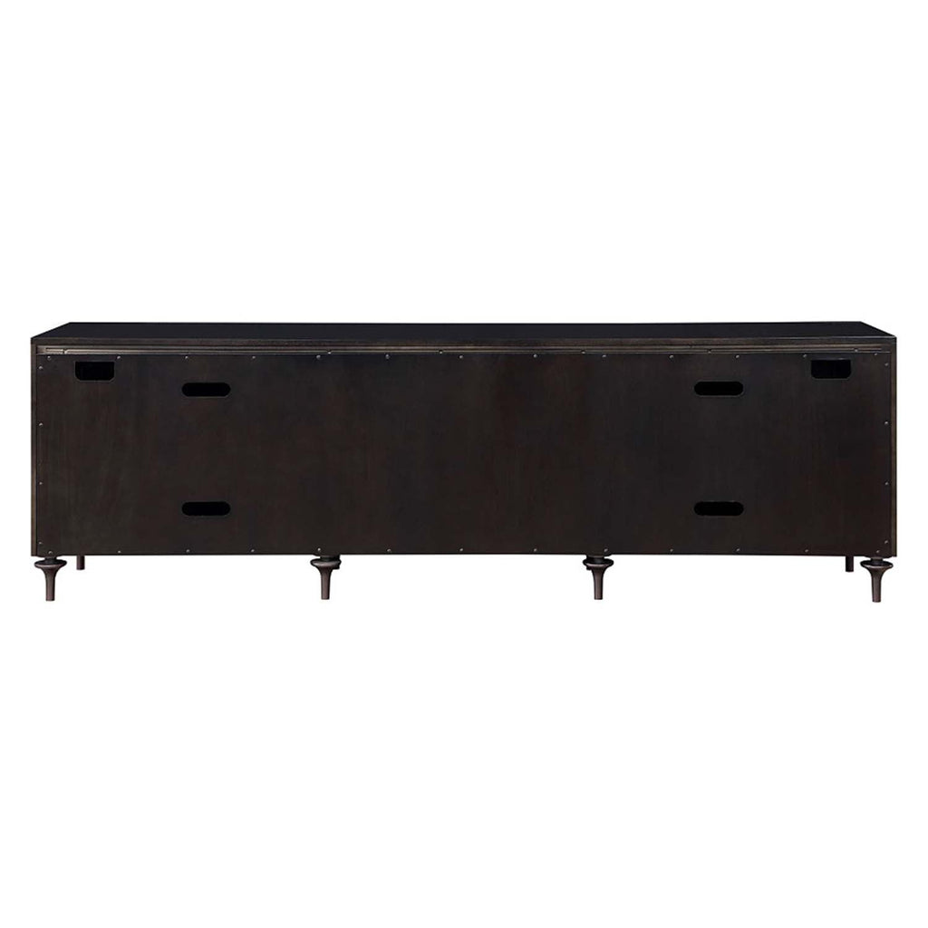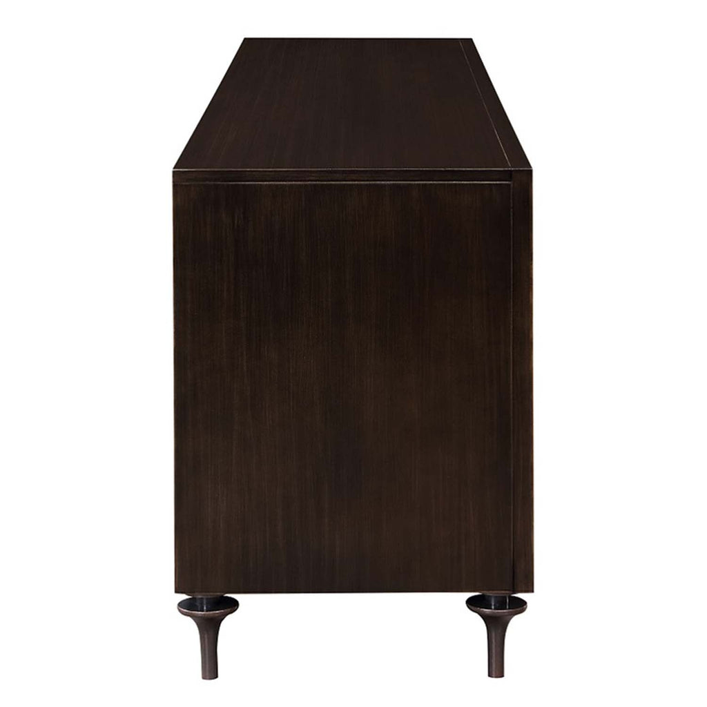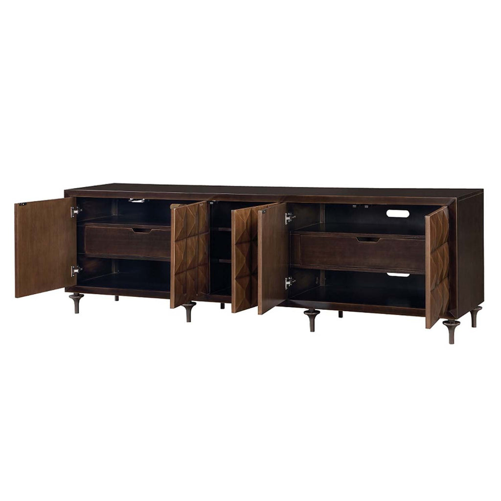 Finished in a rich espresso, the case of this Diya console Cabinet,Living Room surrounds five doors each featuring a faceted geometric pattern in a contrasting rich bronze finish. Supported by art deco-inspired slim, metal legs in a bronze finish. This stand gives you lots of room for storing and organizing board games and more. It features two ample drawers and plenty of shelving space. This versatile piece will suit both contemporary and more traditional interiors. €‹