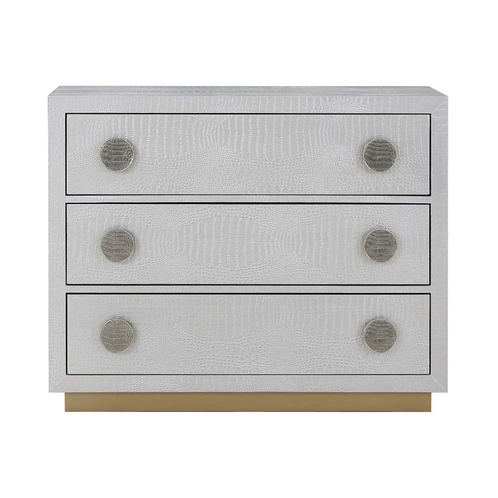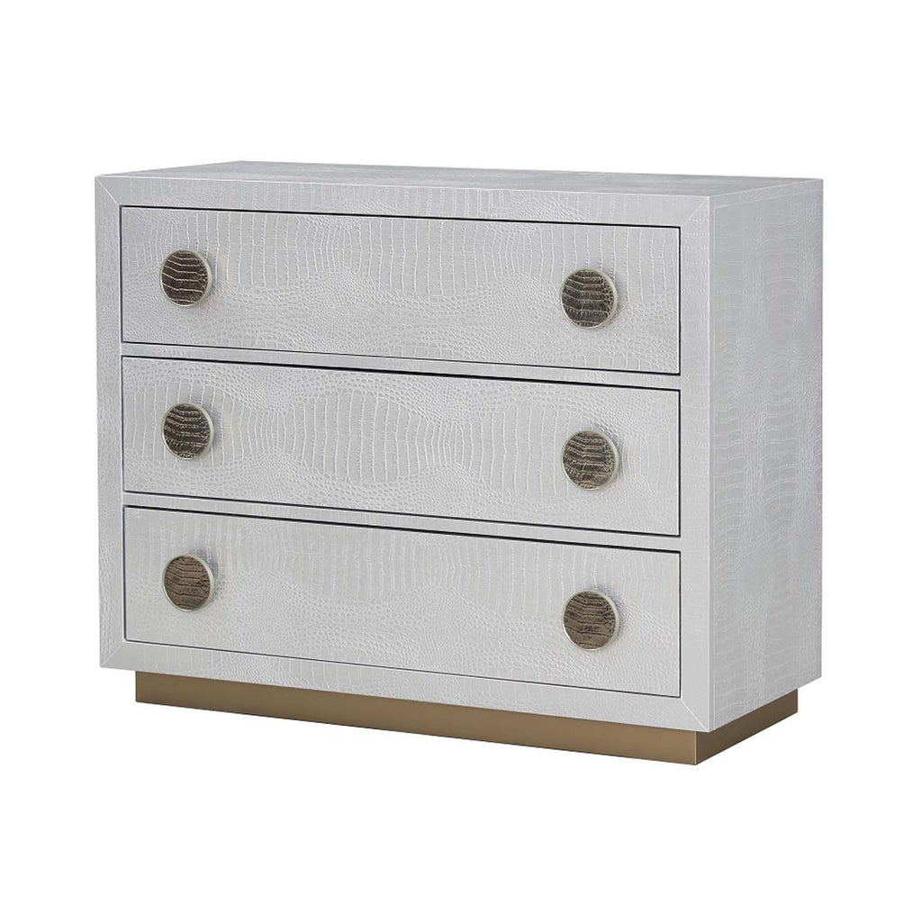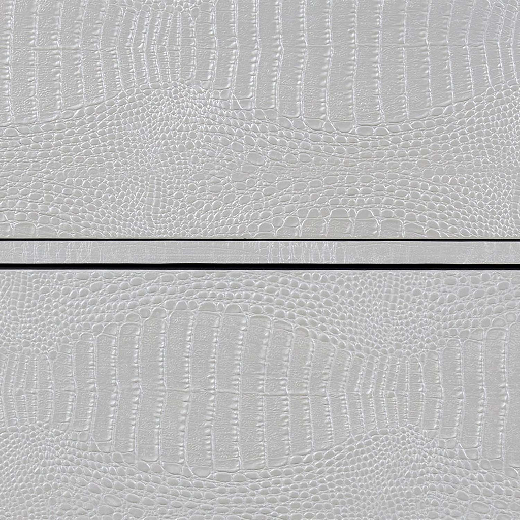 This classic Anpu console Cabinet,Living Room is a versatile piece for contemporary and traditional interiors. An elegant satin brass-finished iron frame is finished in sleek, silver lacquer, which contrasts perfectly with the textured, faux crocodile case and drawer fronts. The piece also features oversized handle pulls on each of the three drawers. The top drawer serves as a jewelry drawer. It sits on a champagne finish base for a glamourous finishing touch.