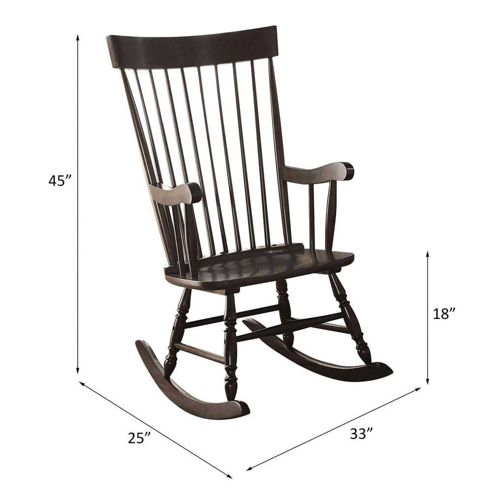The beautiful Arlo wooden rocker will It will be the perfect addition to your living room, sunroom or deck. This graceful rocking chair features a contoured seat and tall chair back for extra comfort. The smooth rocking motion and sturdy durable construction ensure that you'll be able to relax for years to come.