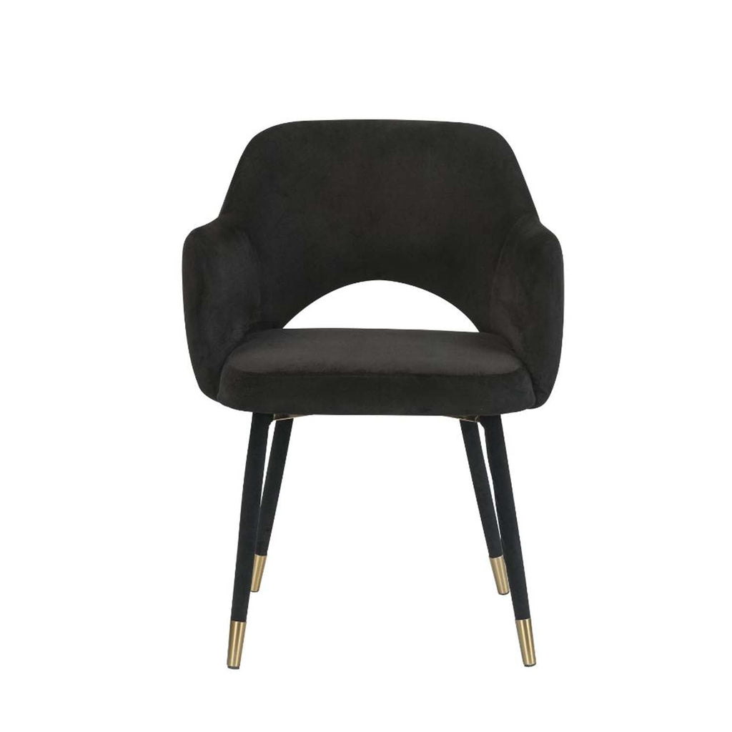 This Applewood accent chair is the perfect piece to add life to any room. It will give your space an instant makeover. Featuring a luxurious black velvet that screams indulgence. Its tight mid-back barrel backrest with an open frame is the ideal contemporary shape for a modern home. Displaying spindle legs with a glistening golden tip. Available in four colors