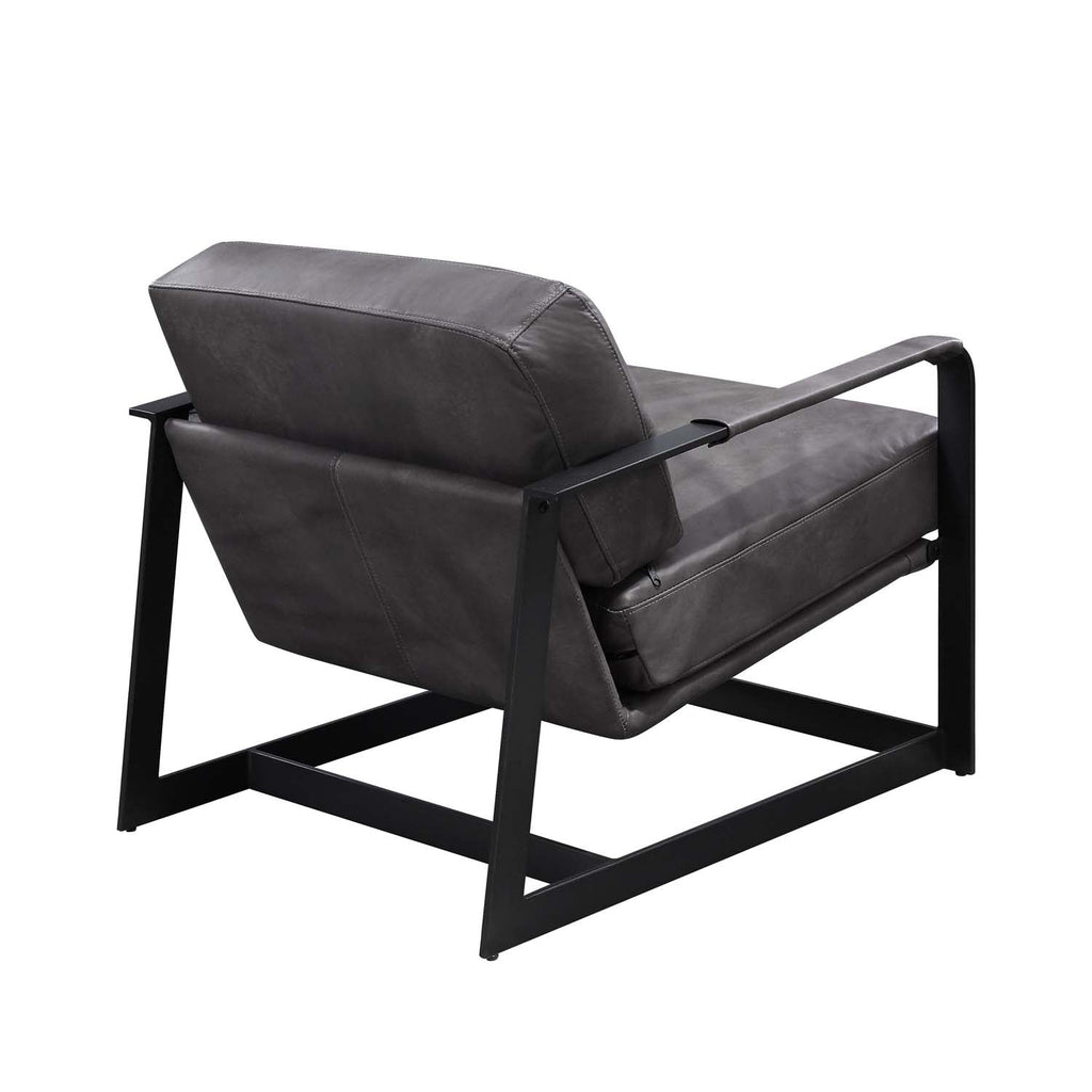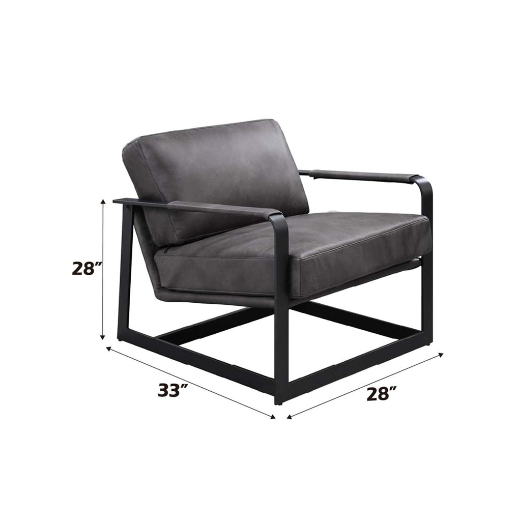 Locnos Accent Chair, Gray Top Grain Leather & Black Finish