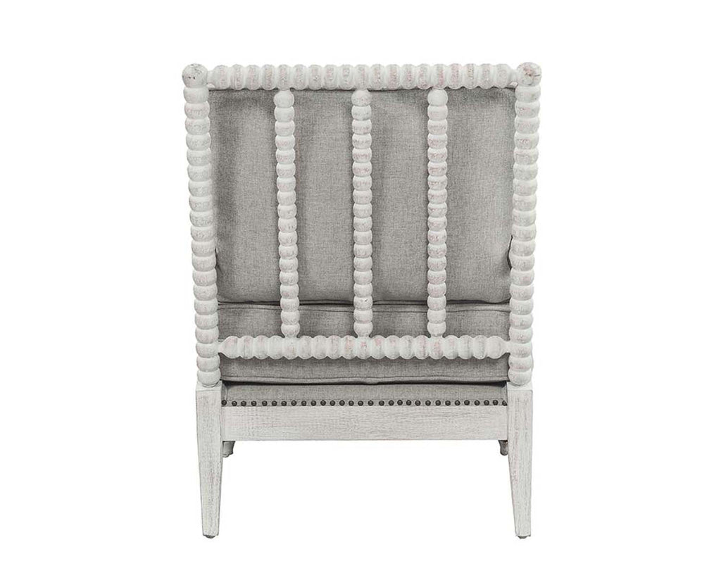 With an eye-catching bobbin-style frame and legs the Saraid accent chair is a classic design with a stylish touch. The neutral gray oak and linen make it easy to style and blend into various decor styles and color schemes. The padded armrests, seat cushion, and backrest provided added comfort for long hours of lounging. The nailhead trim adds a refined touch.