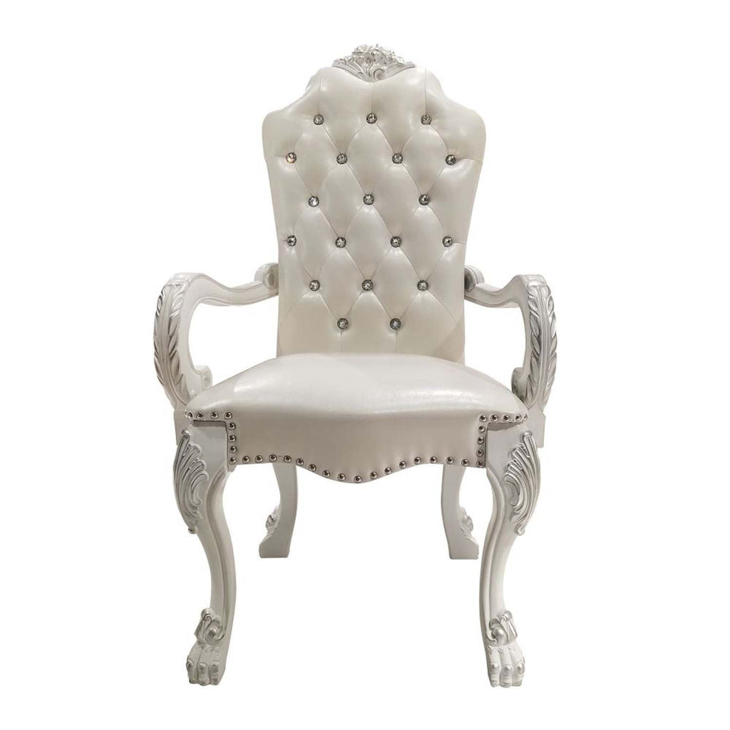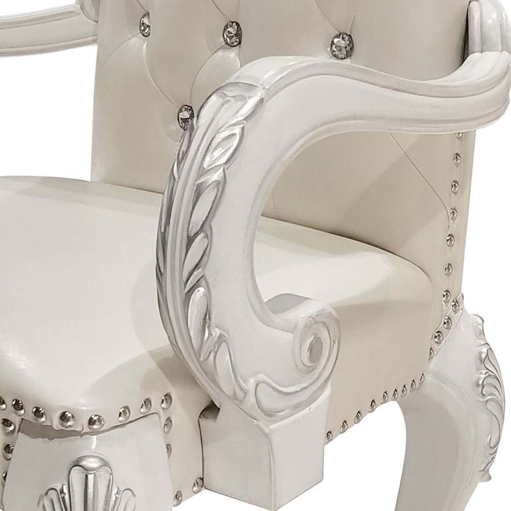 Dresden Arm Chair 2Pc, Faux Leather & Bone White Finish