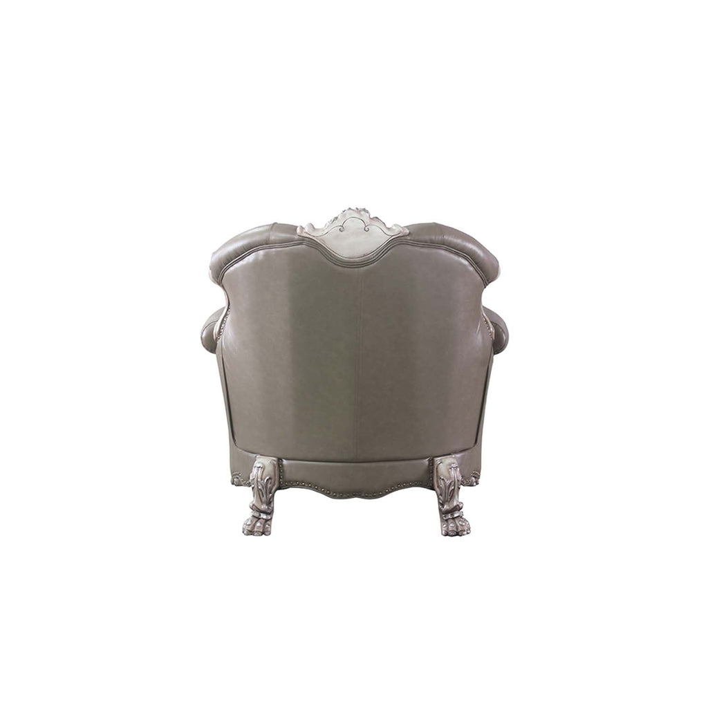 - Introduce our new design for the Dresden chair. Features vintage bone white color, this chair creates an elegant and traditional design into your living room. Hand-Crafted pieces inspired from the luxurious design of the past, the new Dresden chair features elaborate wood carving details and a sophisticated style that give your living space a comfort and royal atmosphere.