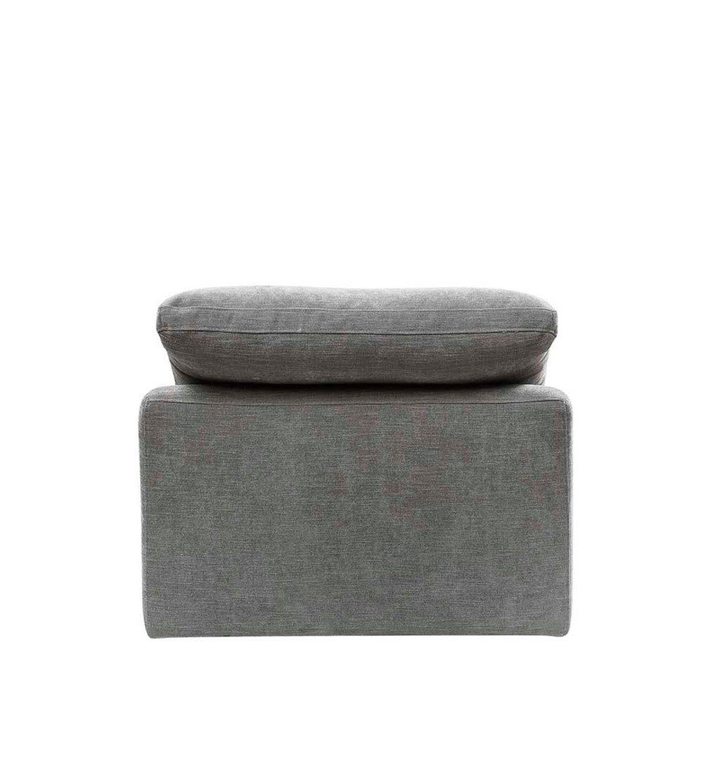 Complete your living room with the unique design and sink-in comfort of the Naveen modular collection. Add both contemporary and modern taste with this beautiful group wrapped in a relaxing hue fabric. This group comes with multiple seating options of wedge, armless chair and ottoman. You may build your own configurations to fulfill any need.