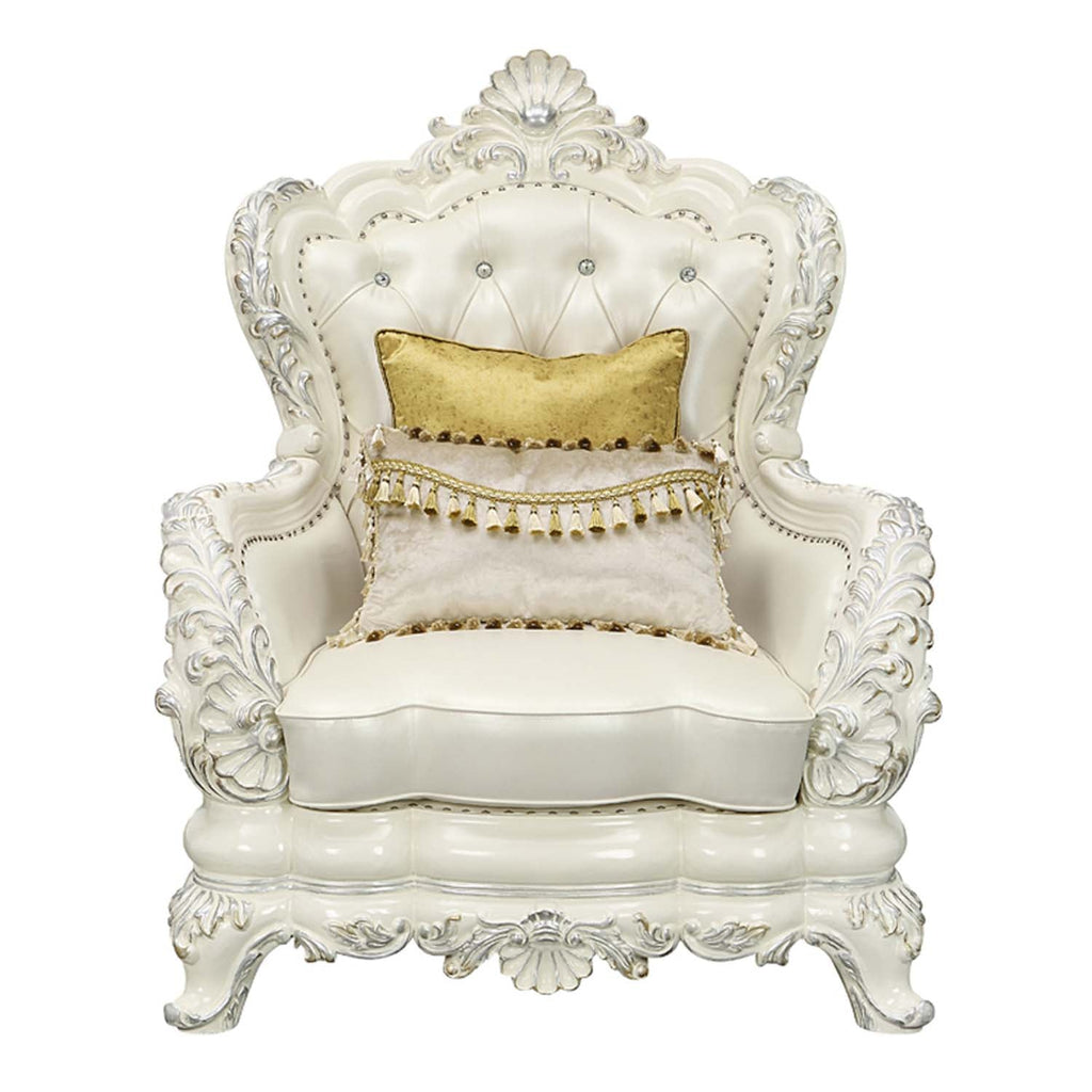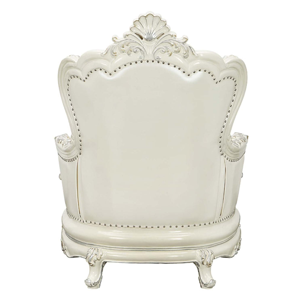 Adara Chair w/2 Pillows, Pearl White Faux Leather & Antique White Finish