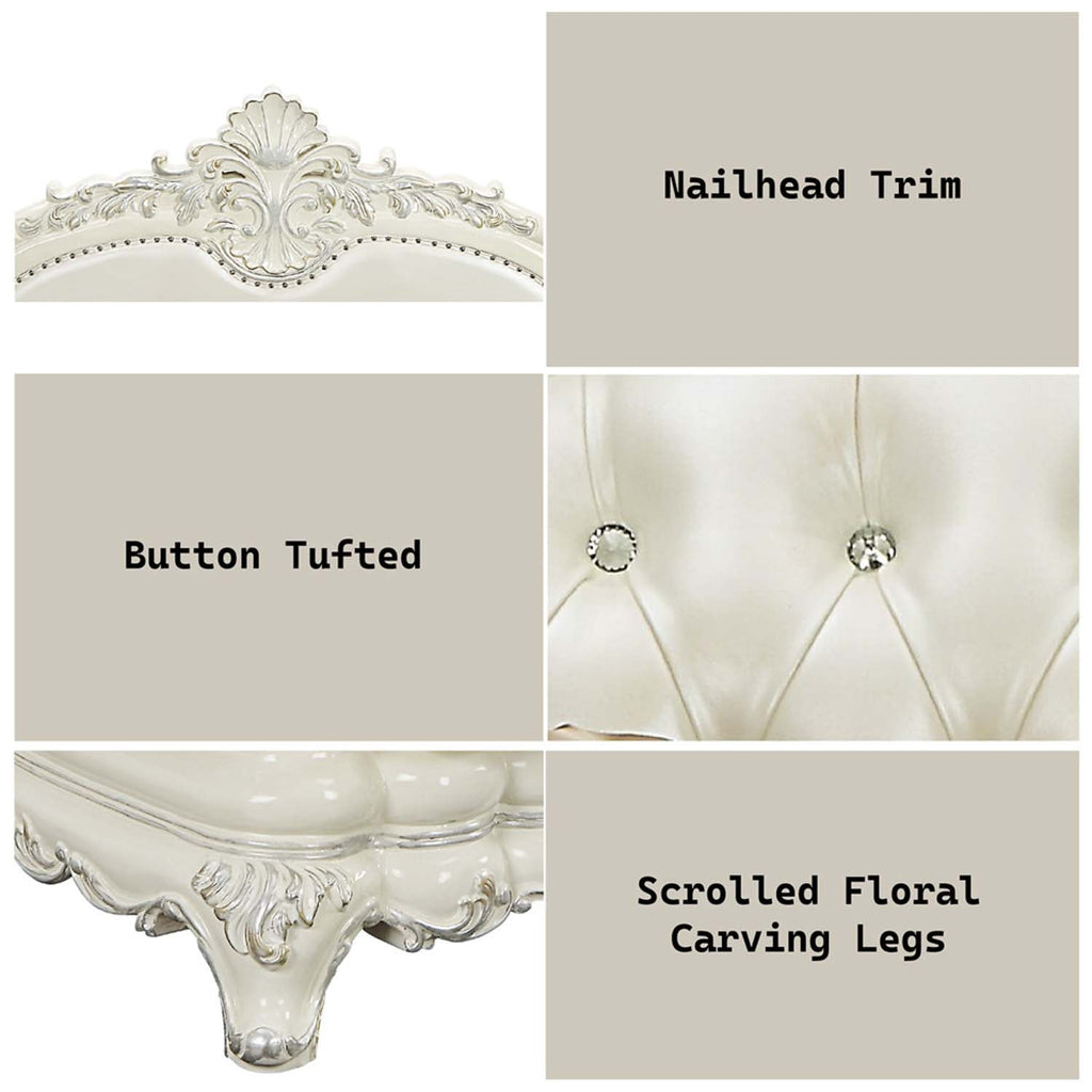 Color: Pearl White Synthetic Leather & Antique White Finish