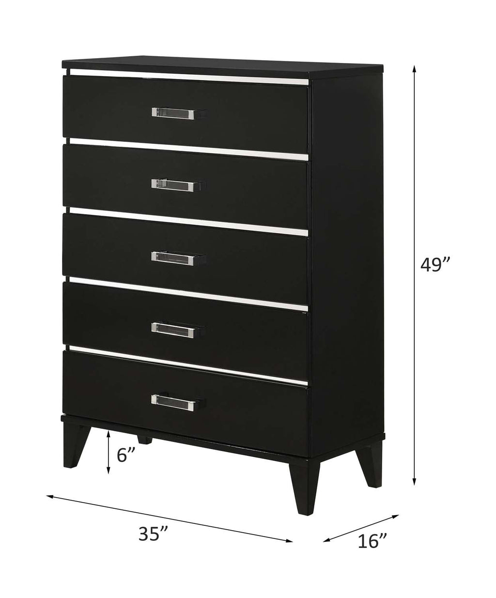 Chelsie 5 Storage Drawers Chest, Black Finish