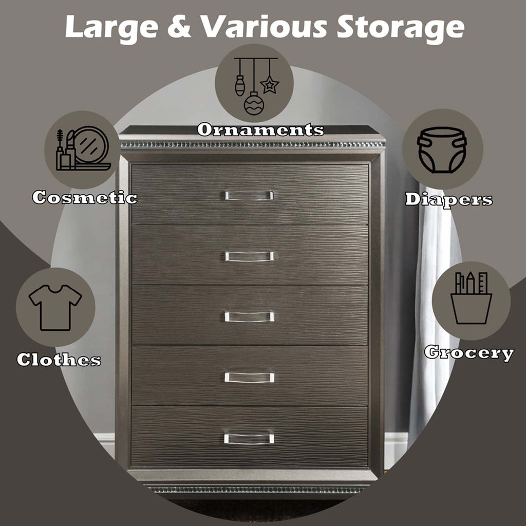 Sadie 5 Storage Drawer Chest, Dark Champagne Finish