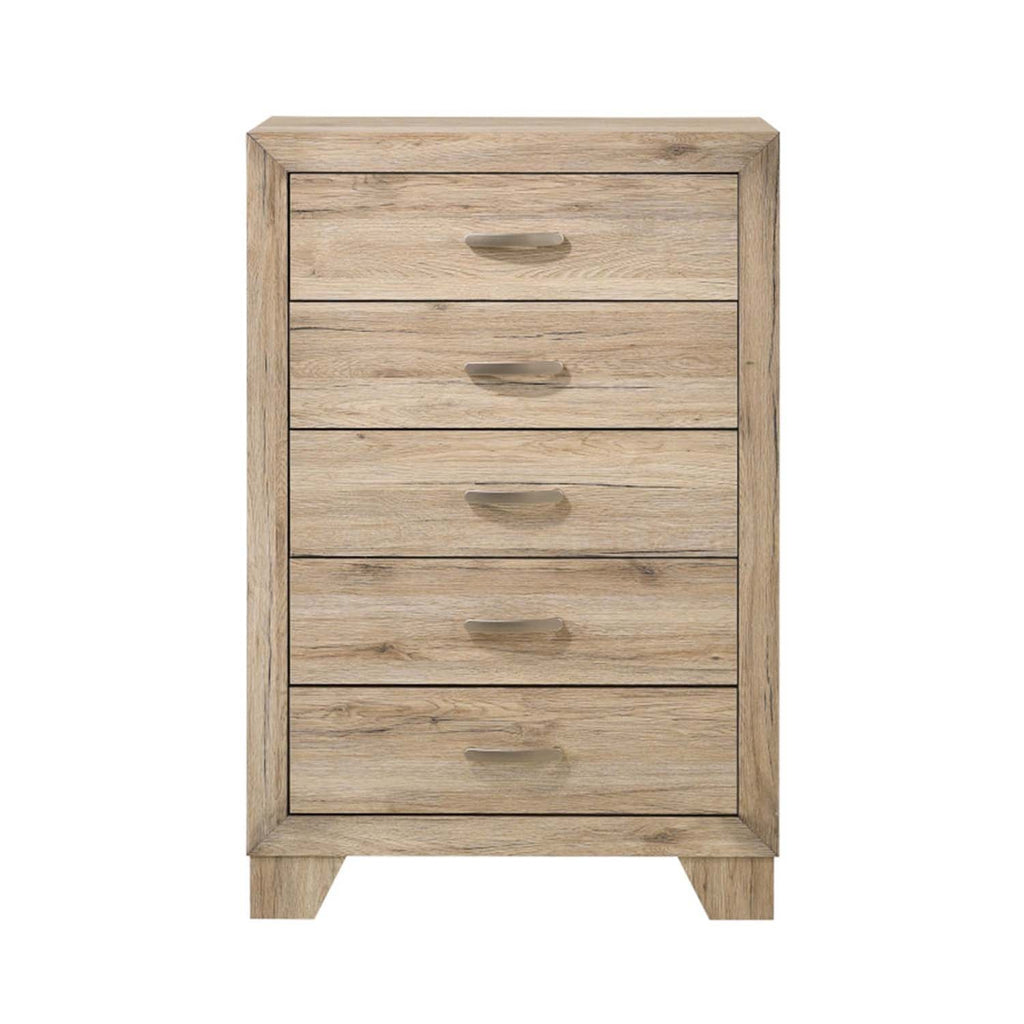 The Miquell chest provides storage in any bedroom. This contemporary chest features a rectangular frame with low-profile tapered legs, featuring five spacious drawers. It is crafted with a transitional look that is an ideal addition to any bedroom style. This fashionable piece will fuse with the surrounding decor and accent your other bedroom furniture, transforming a room from ordinary into sophisticated.