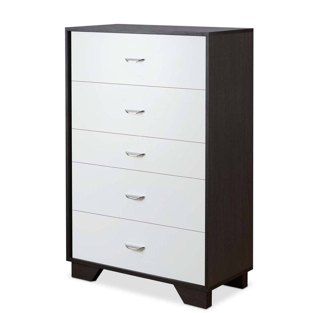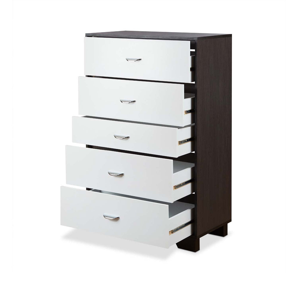 Eloy 5 Storage Drawers Chest, White & Espresso Finish