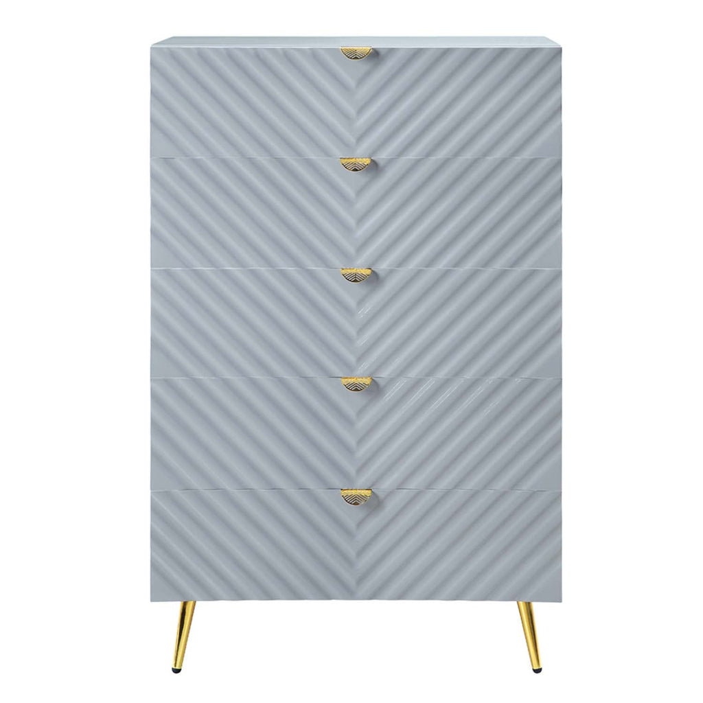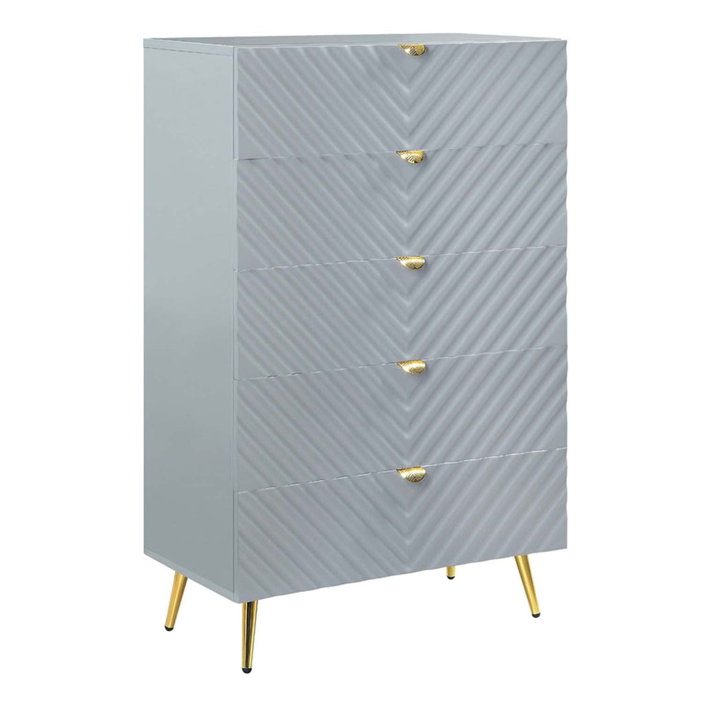 Gaines 5 Storage Drawers Chest, Gray High Gloss Finish